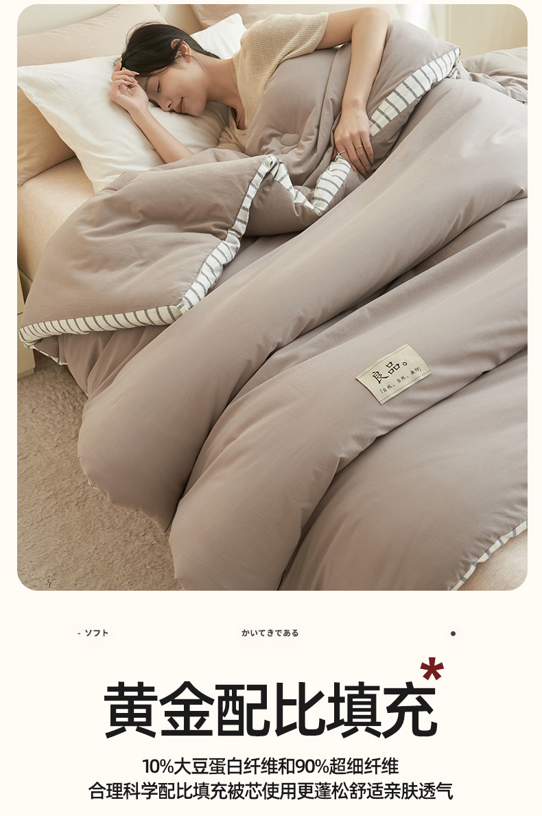 (总)子由家居 2025新款良品格大豆子母冬被被子被芯,子母被-白+灰,子母被-白+绿,子母被-白+杏,子母被-灰+驼