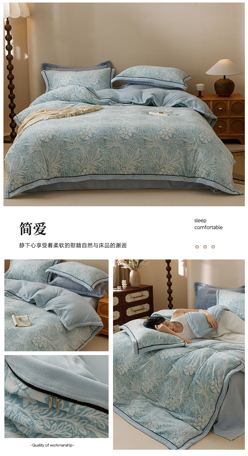 • 91家纺网 家纺一手货源 找家纺 2024新款牛奶绒染色雕花可拆洗冬被被子被芯 简爱