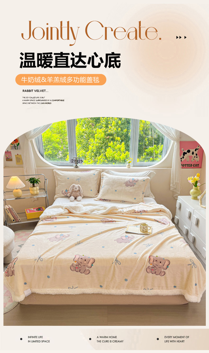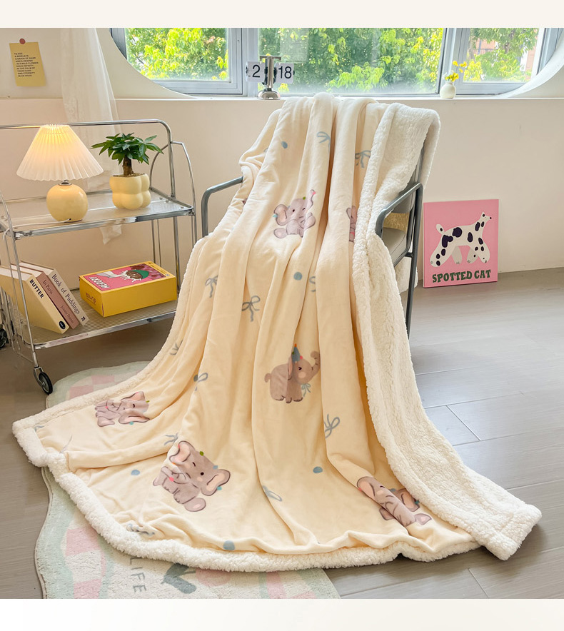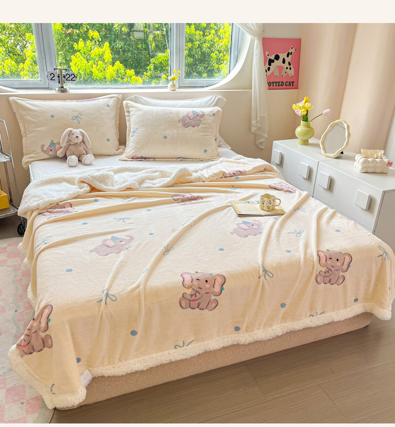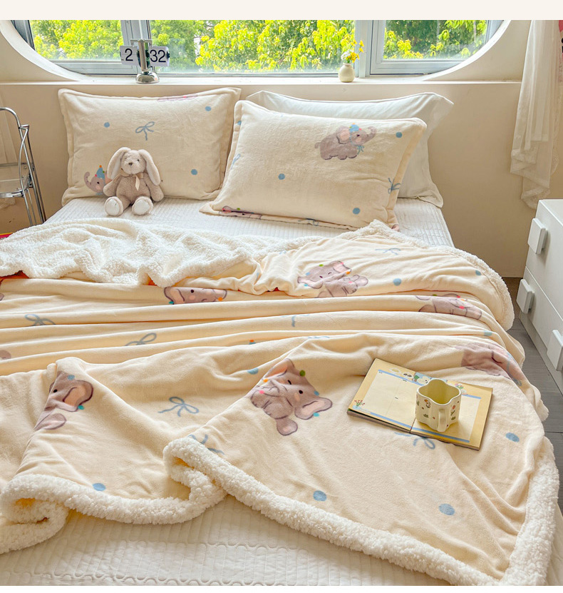 商品名称:沐慕 2024新款AB版牛奶绒拼羊羔绒毛毯毯子 毛毯-可爱小象