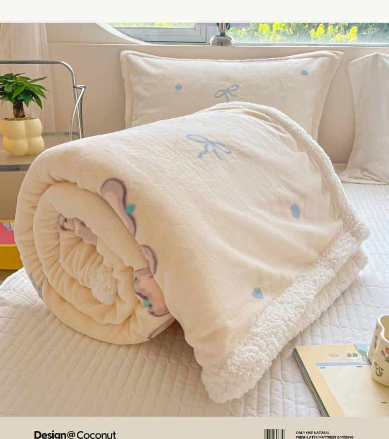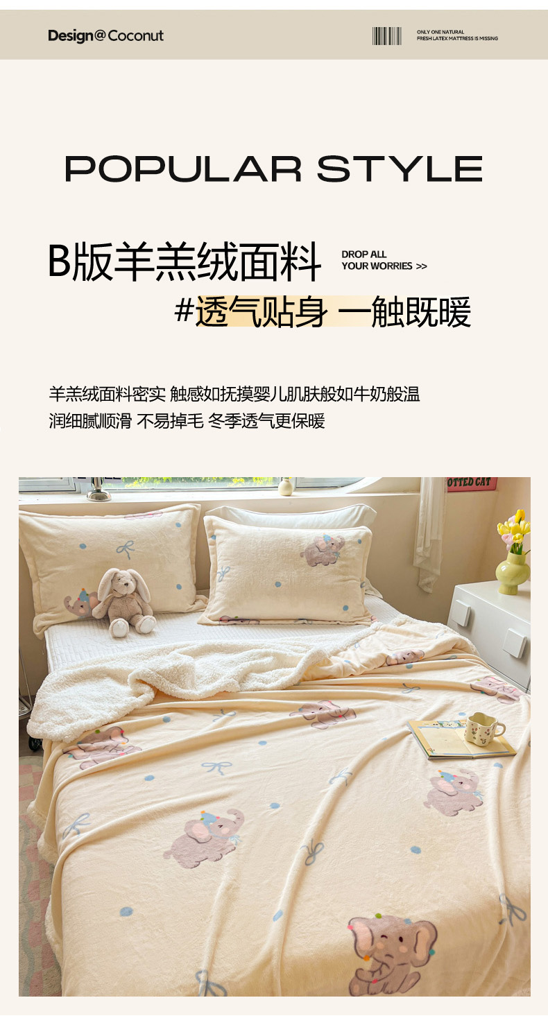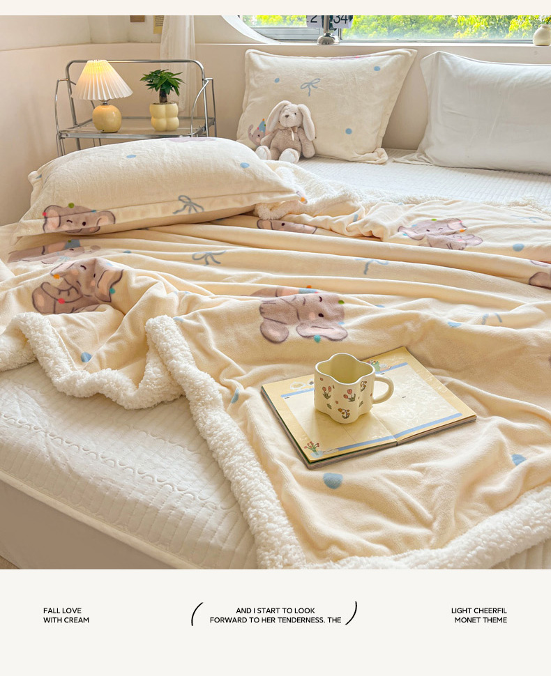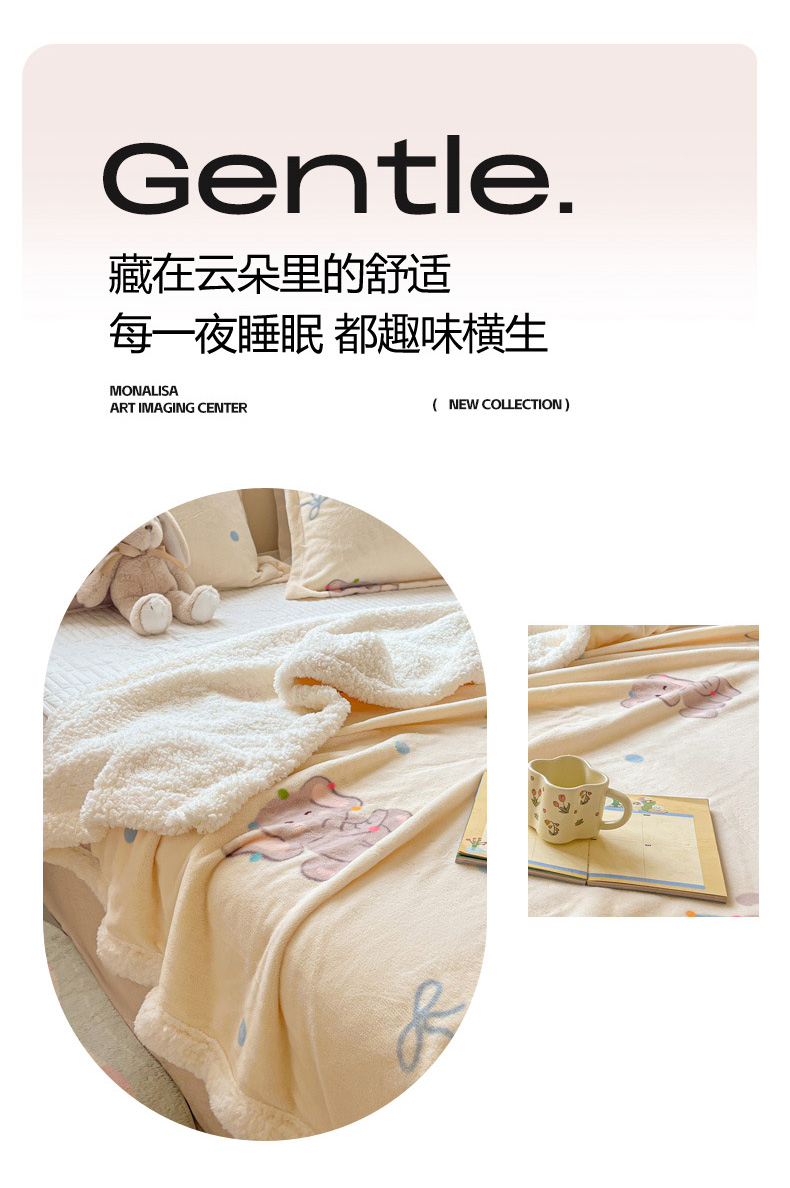 商品名称:沐慕 2024新款AB版牛奶绒拼羊羔绒毛毯毯子 毛毯-可爱小象