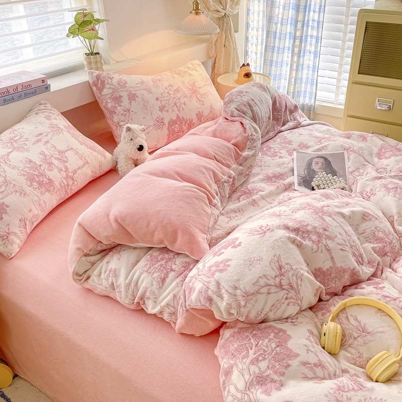商品名称:雅居纺家纺 2024新款高克重印花牛奶绒单枕套 幻境-粉