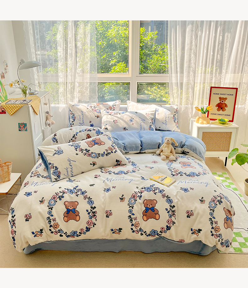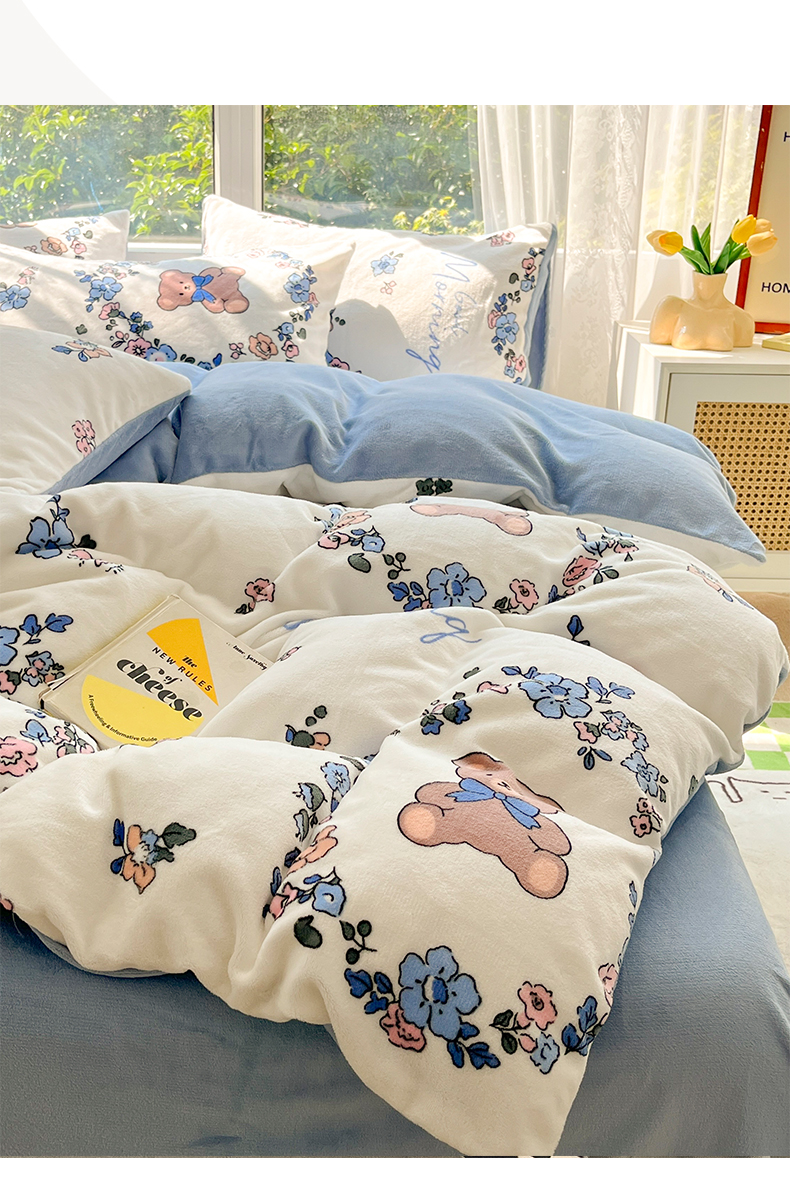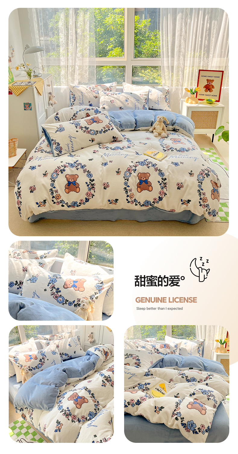 雅居纺家纺 2024新款高克重印花牛奶绒四件套 甜蜜的爱