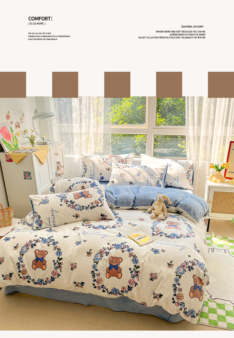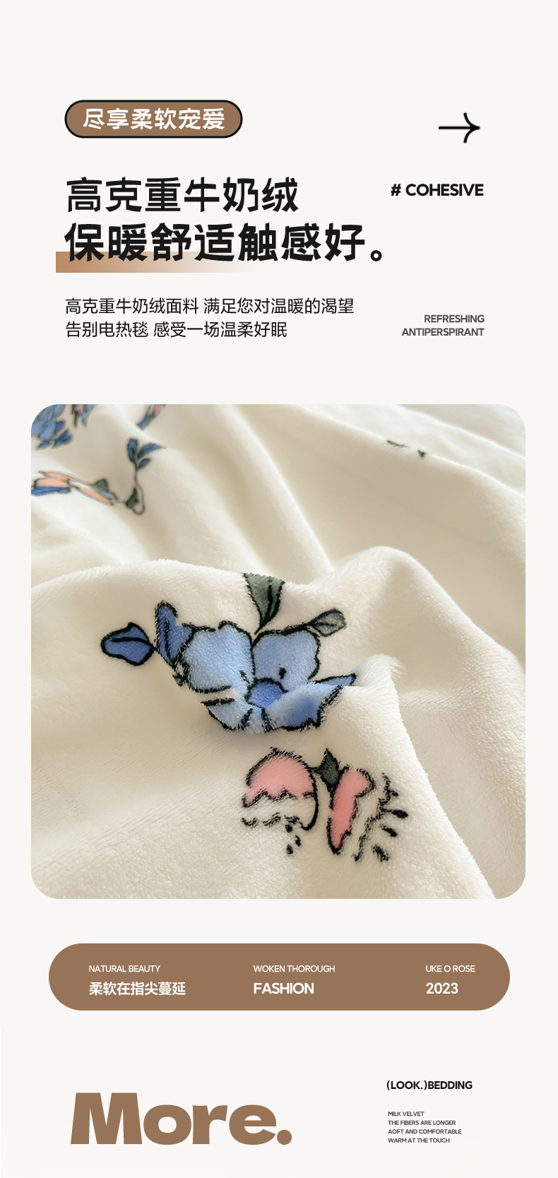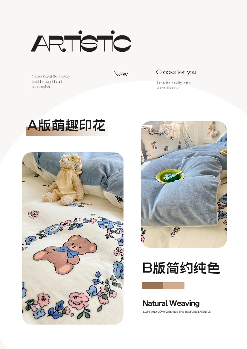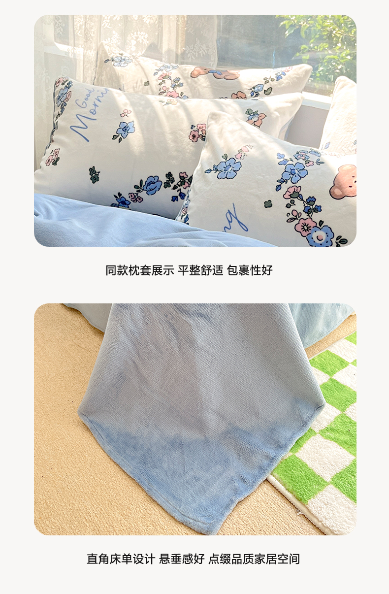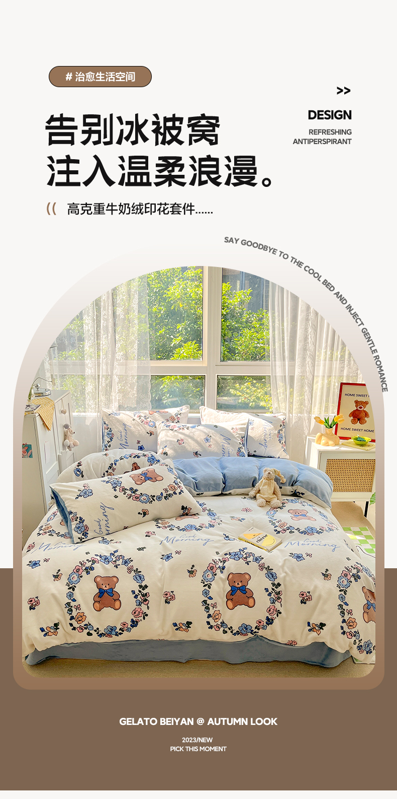 商品名称:雅居纺家纺 2024新款高克重印花牛奶绒四件套 甜蜜的爱
