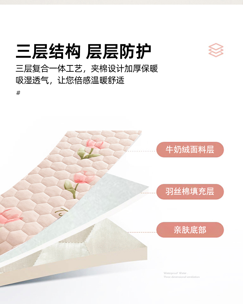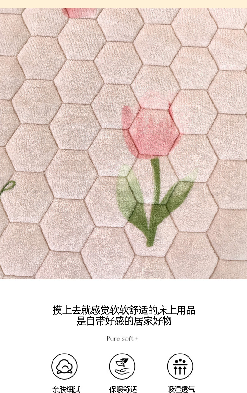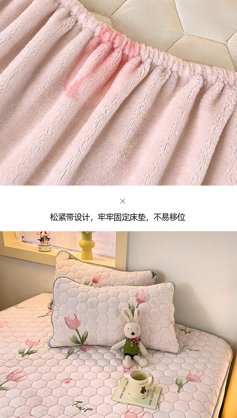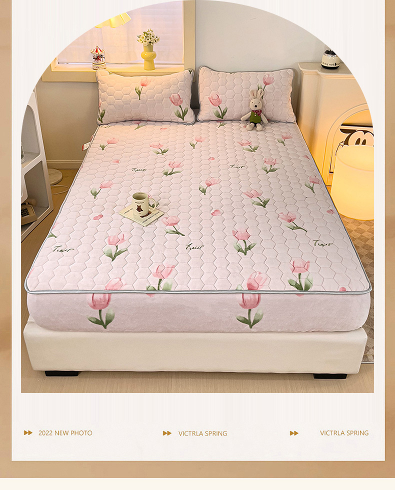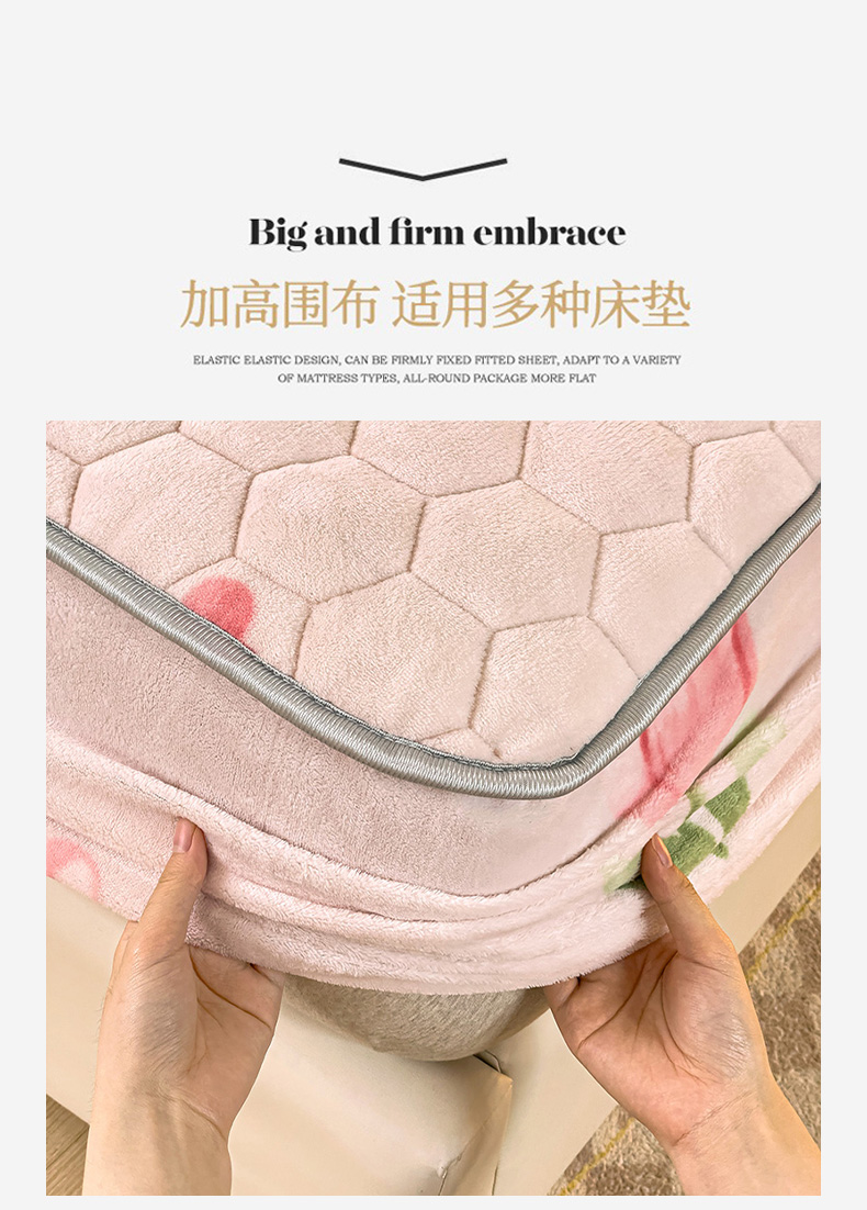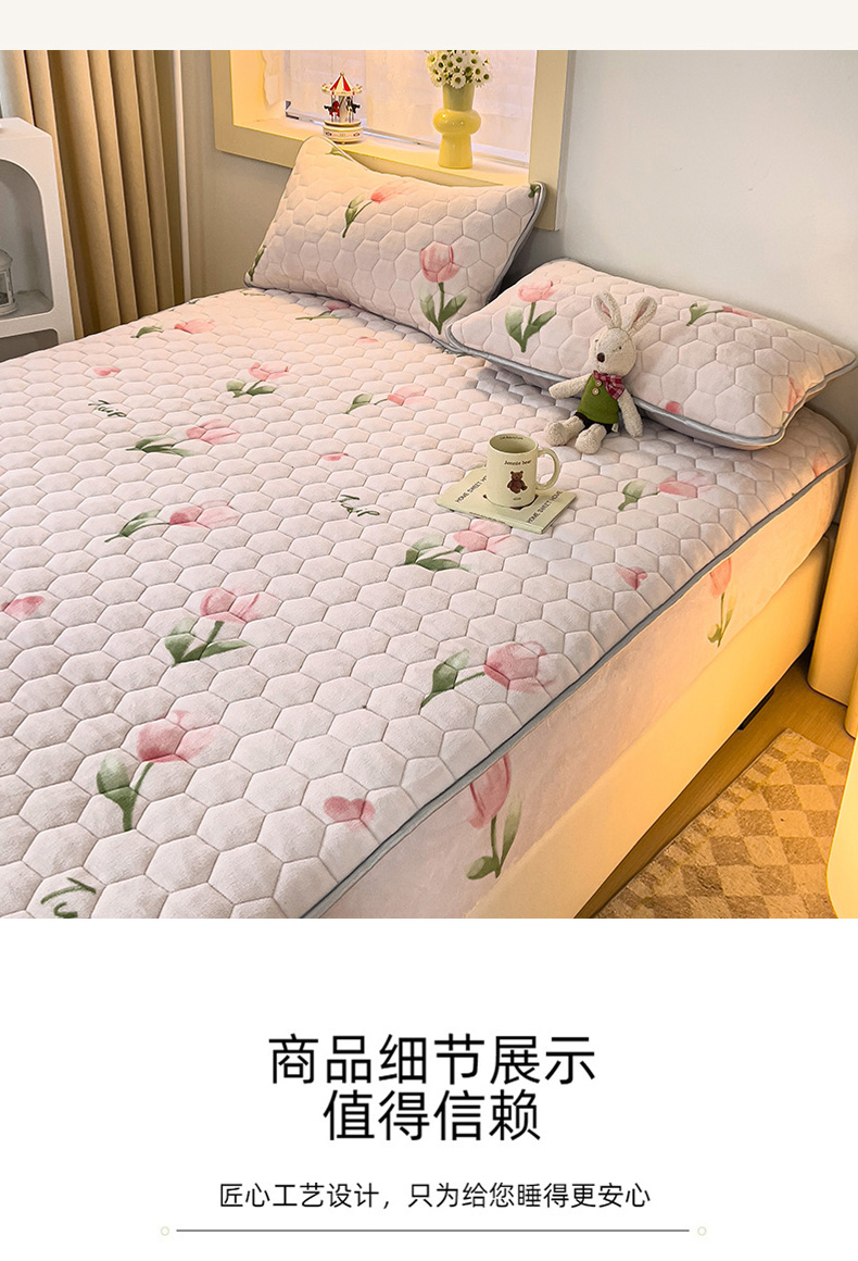 • 91家纺网 家纺一手货源 找家纺 梦舒羽 2025新款牛奶绒夹棉床笠三件套床罩床单床盖护垫套 花语