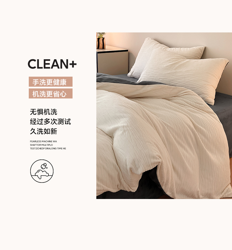 (总)雅居纺家纺 2022新款全棉华夫格普通款四件套,焦糖,米驼,奶油白,柔粉,深灰,雾蓝,月灰