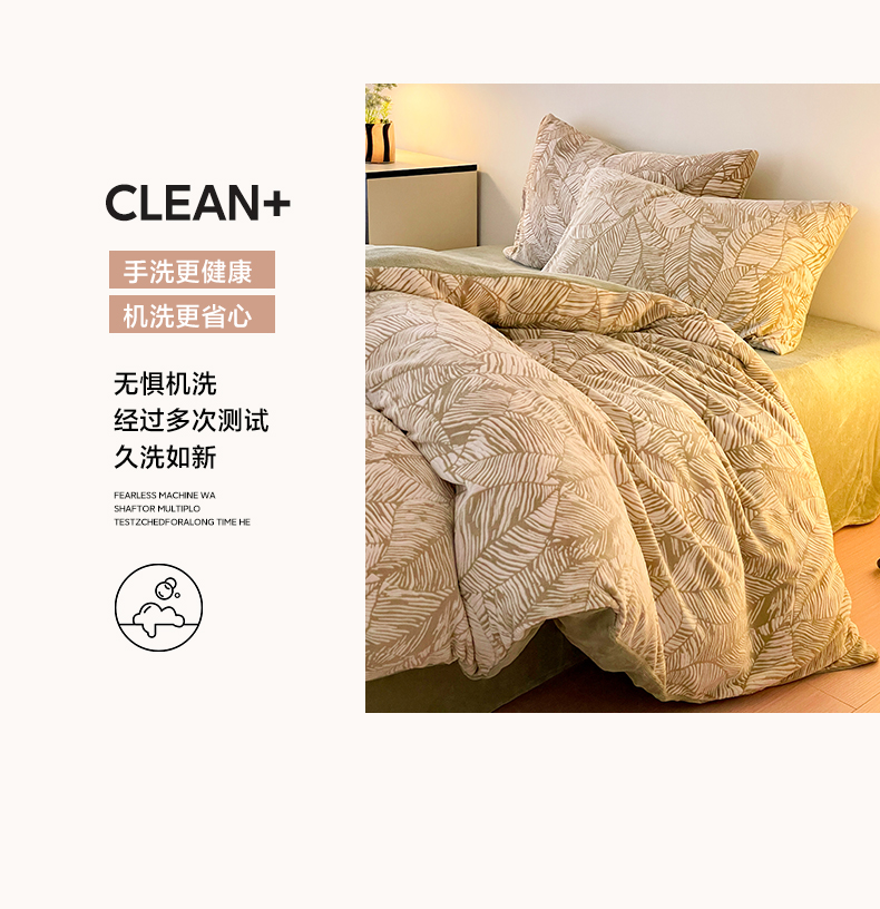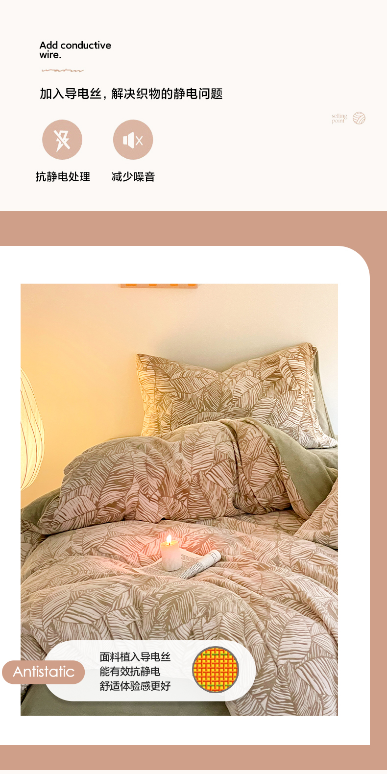 商品名称:雅居纺家纺 2024新款花卉雕花绒四件套 深色树叶