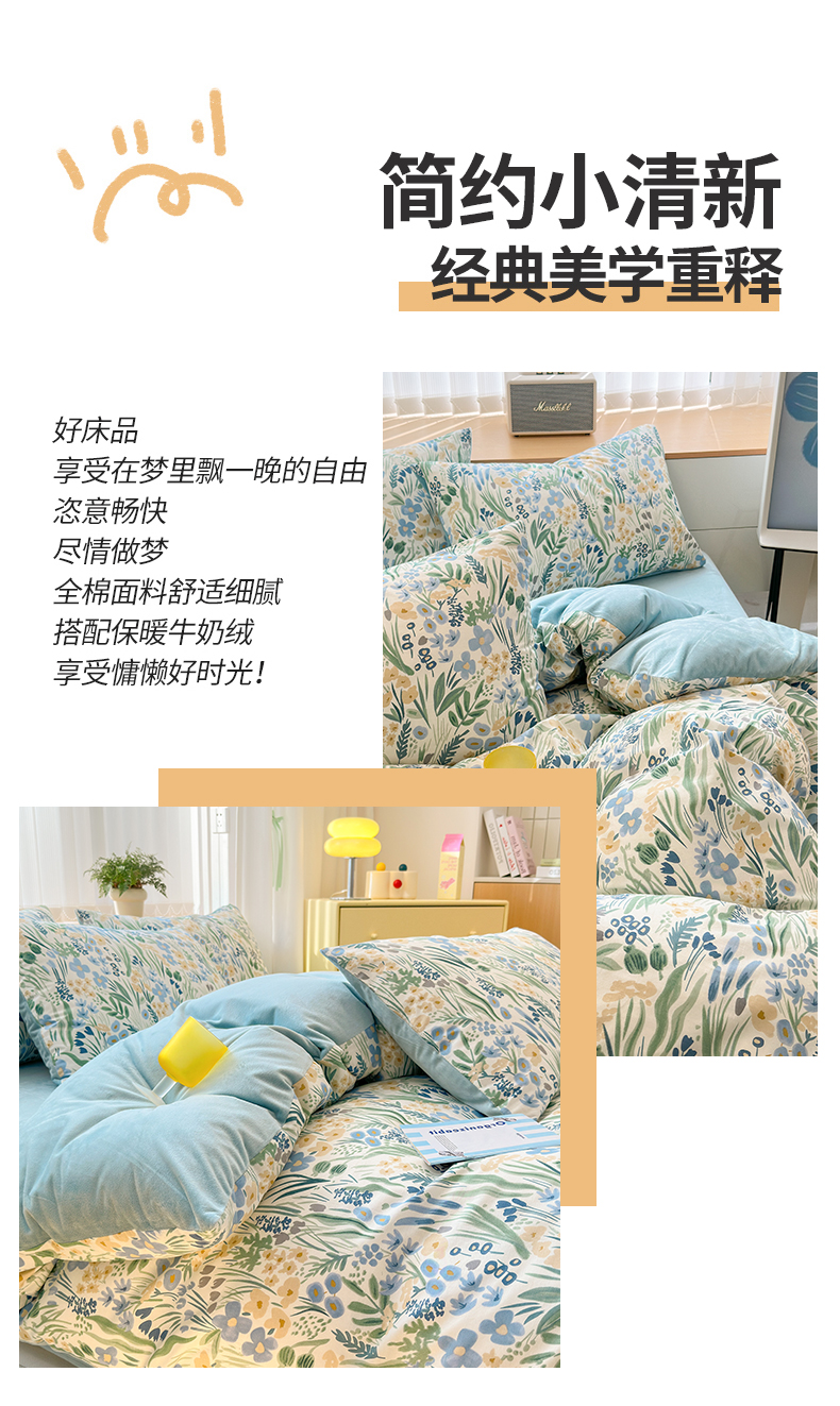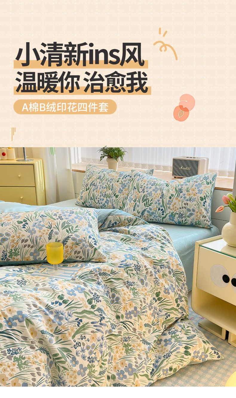 当前位置: 91家纺网 > 商品网购 > 床品套件 > 四件套 > 其它四件套 > 清雅福 2024新款小清新ins棉加绒印花四件套系列-棉绒风格二 踏青