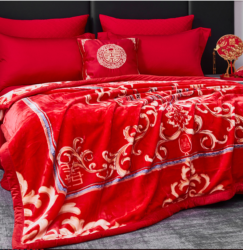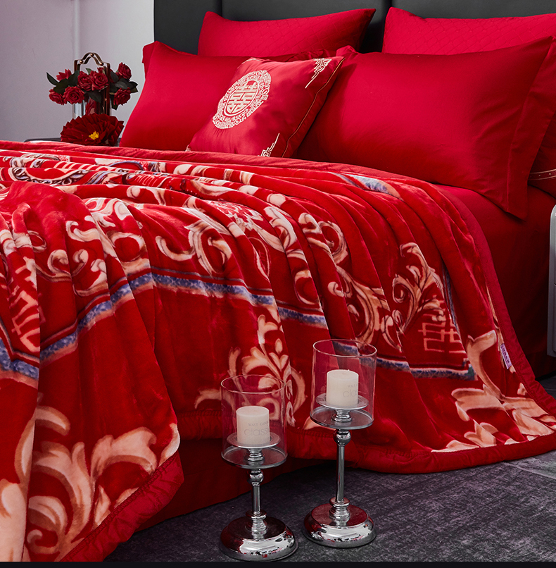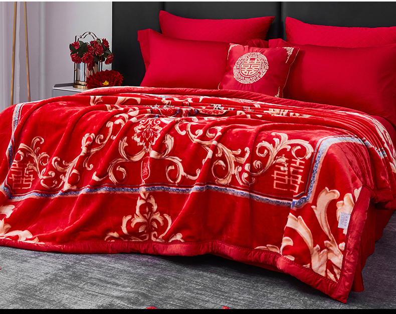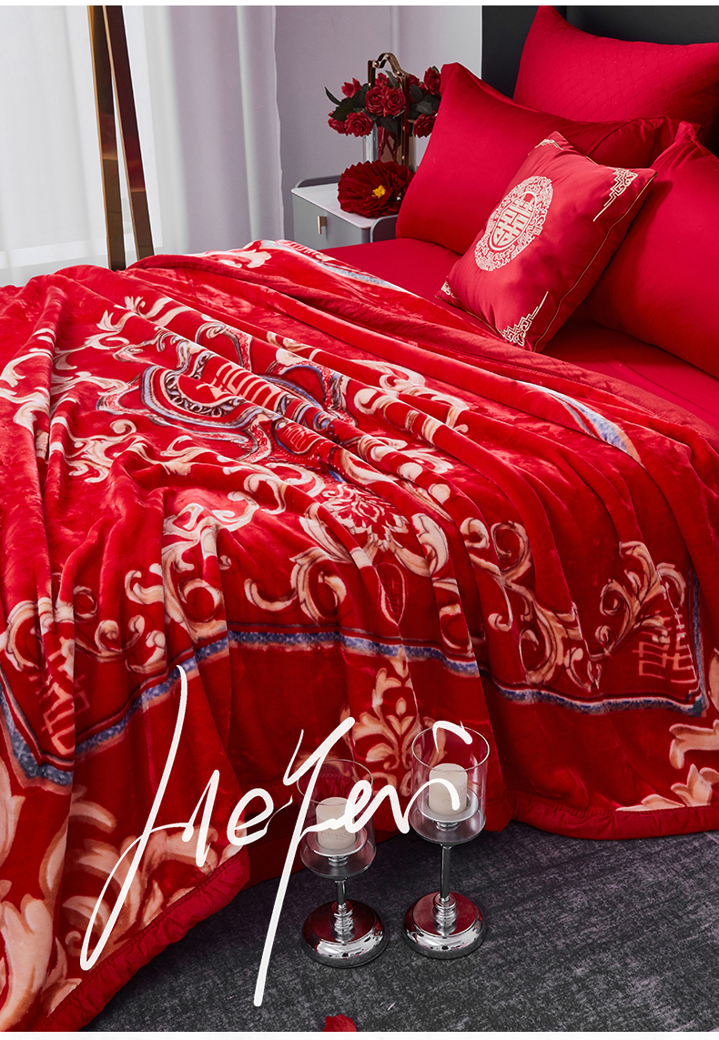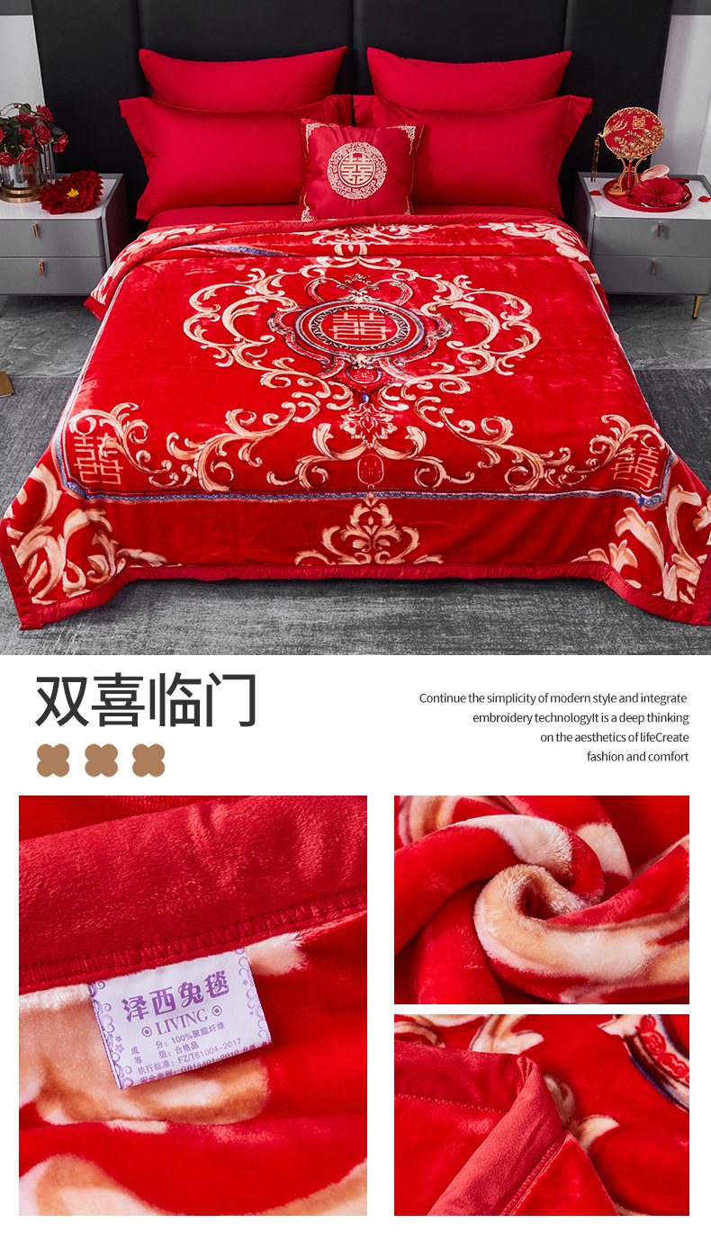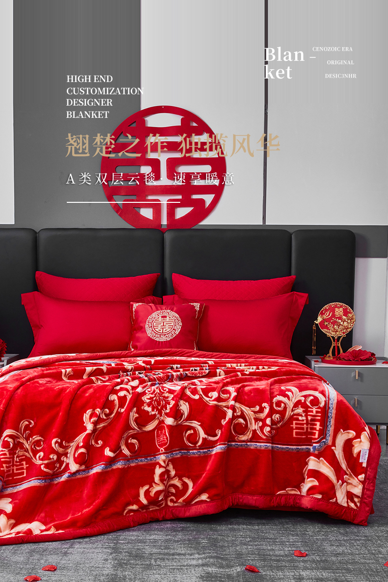 凯轩毛毛毯毯子网销专供 2024新款A类双层云毛毯毯子 双喜临门