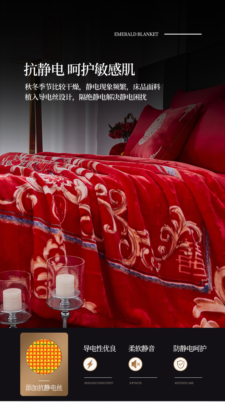 商品名称:凯轩毛毛毯毯子网销专供 2024新款A类双层云毛毯毯子 双喜临门