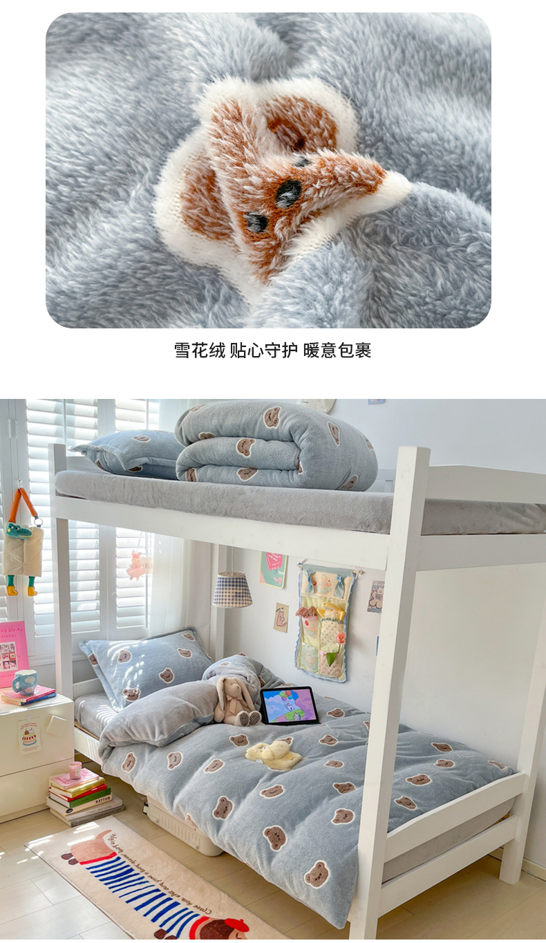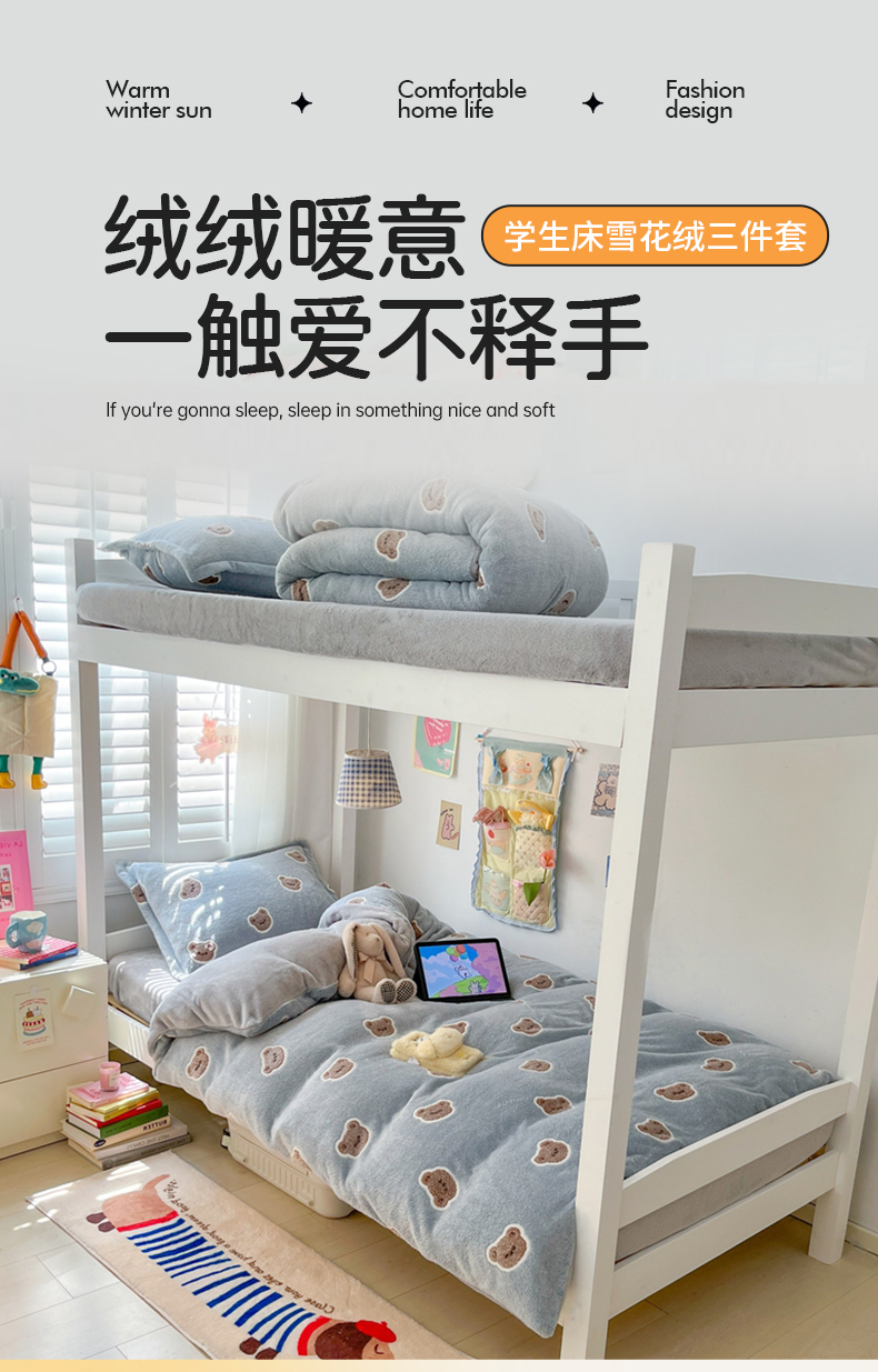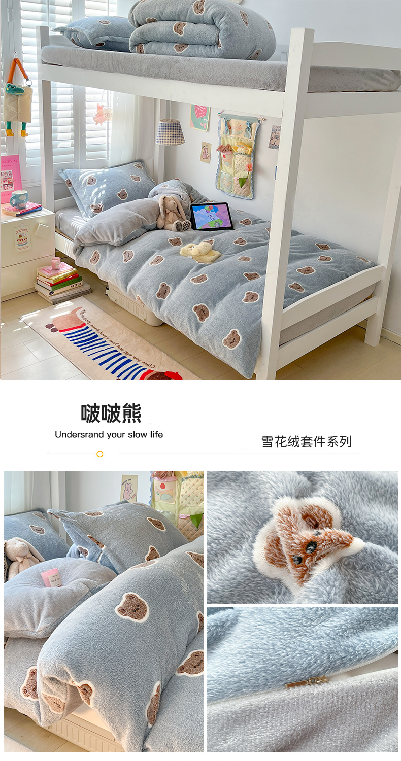 当前位置: 91家纺网 > 商品网购 > 床品套件 > 三件套 > 川悦生活 2024新款雪花绒宿舍三件套 啵啵熊