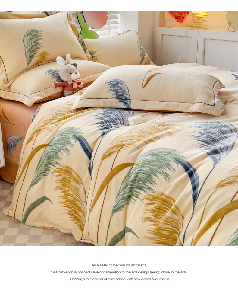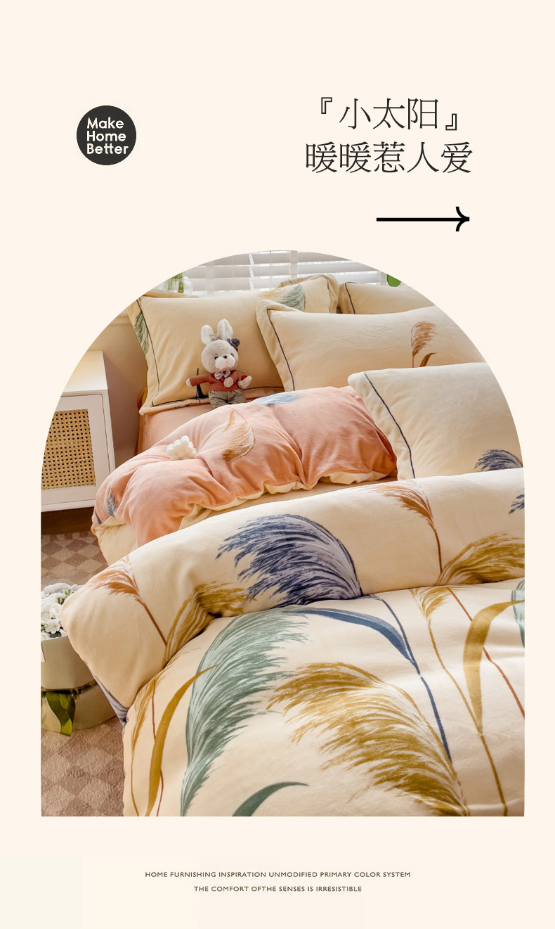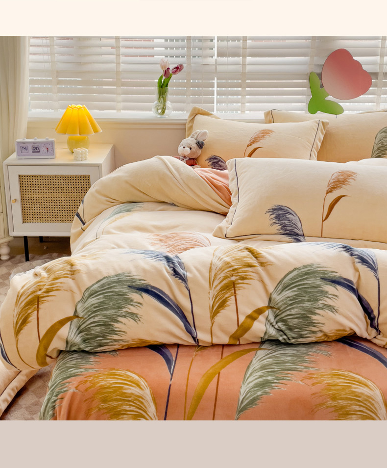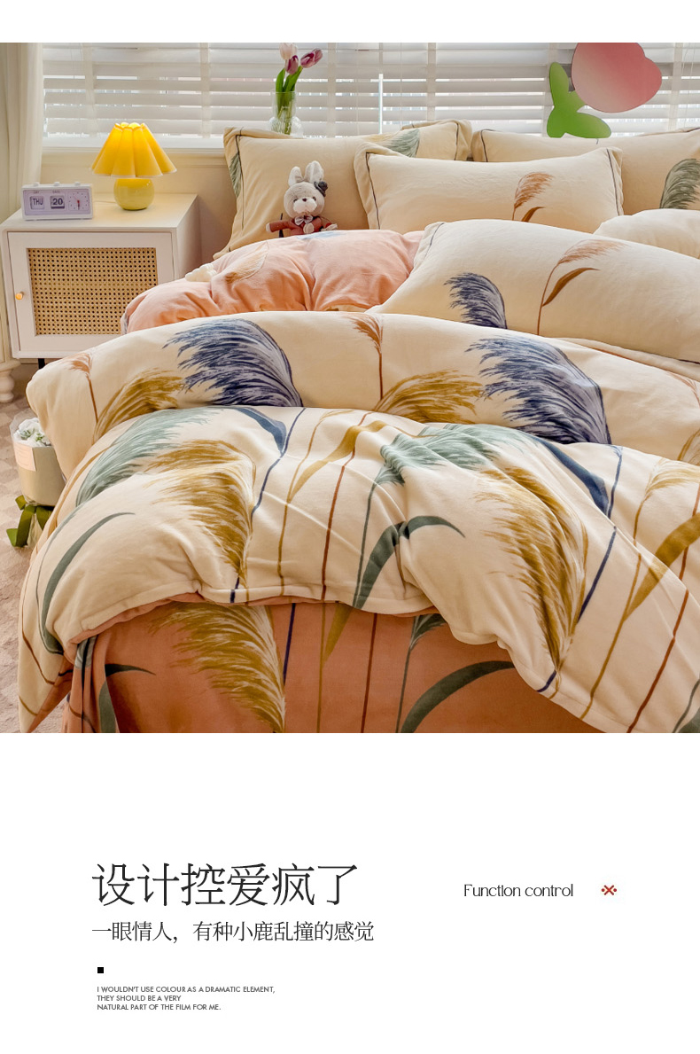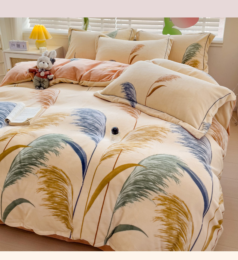 丽涵家纺 2024秋冬新品冰岛臻棉绒保暖四件套 芦苇花-杏色