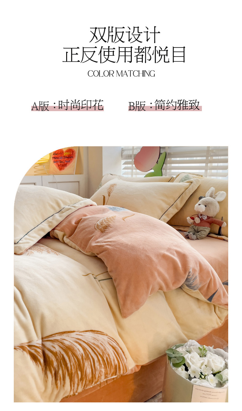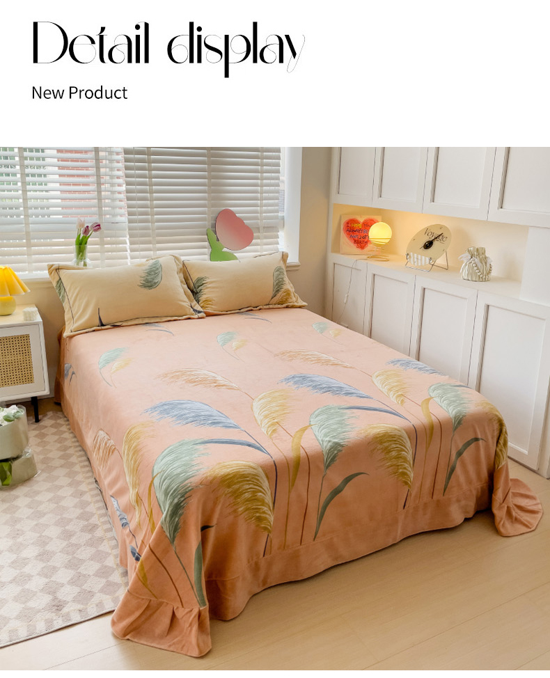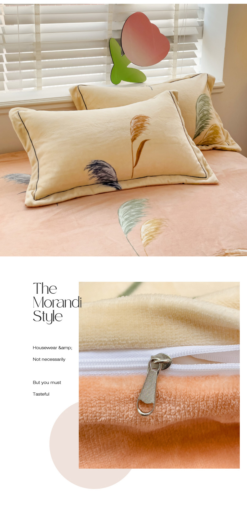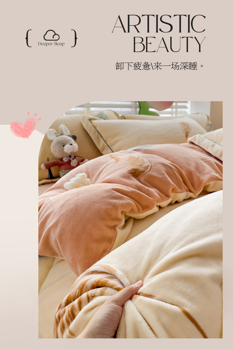 丽涵家纺 2024秋冬新品冰岛臻棉绒保暖四件套 芦苇花-杏色