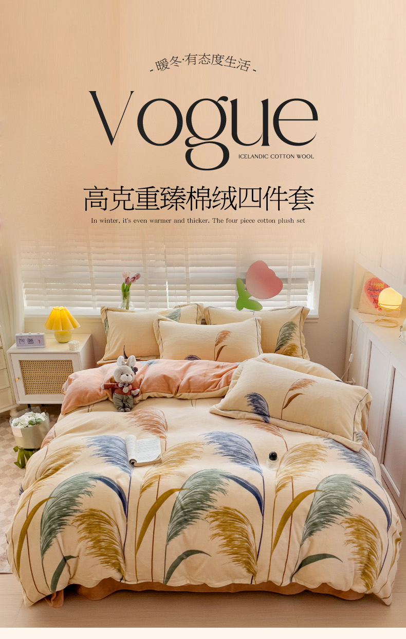 商品名称:丽涵家纺 2024秋冬新品冰岛臻棉绒保暖四件套 芦苇花-杏色
