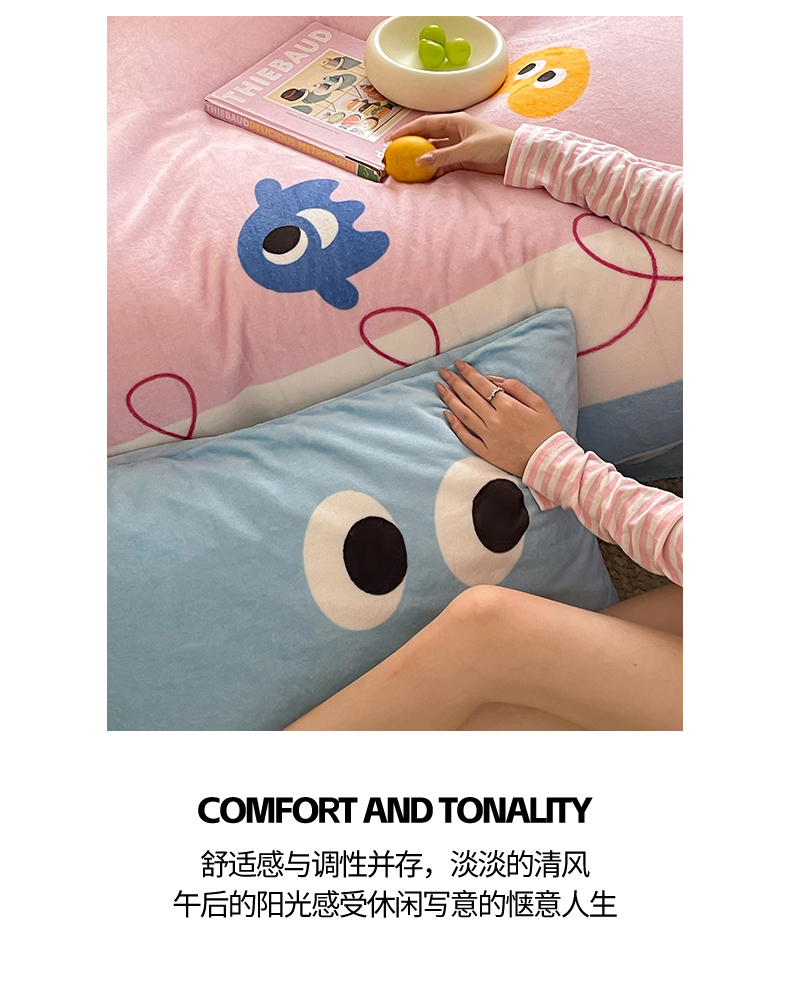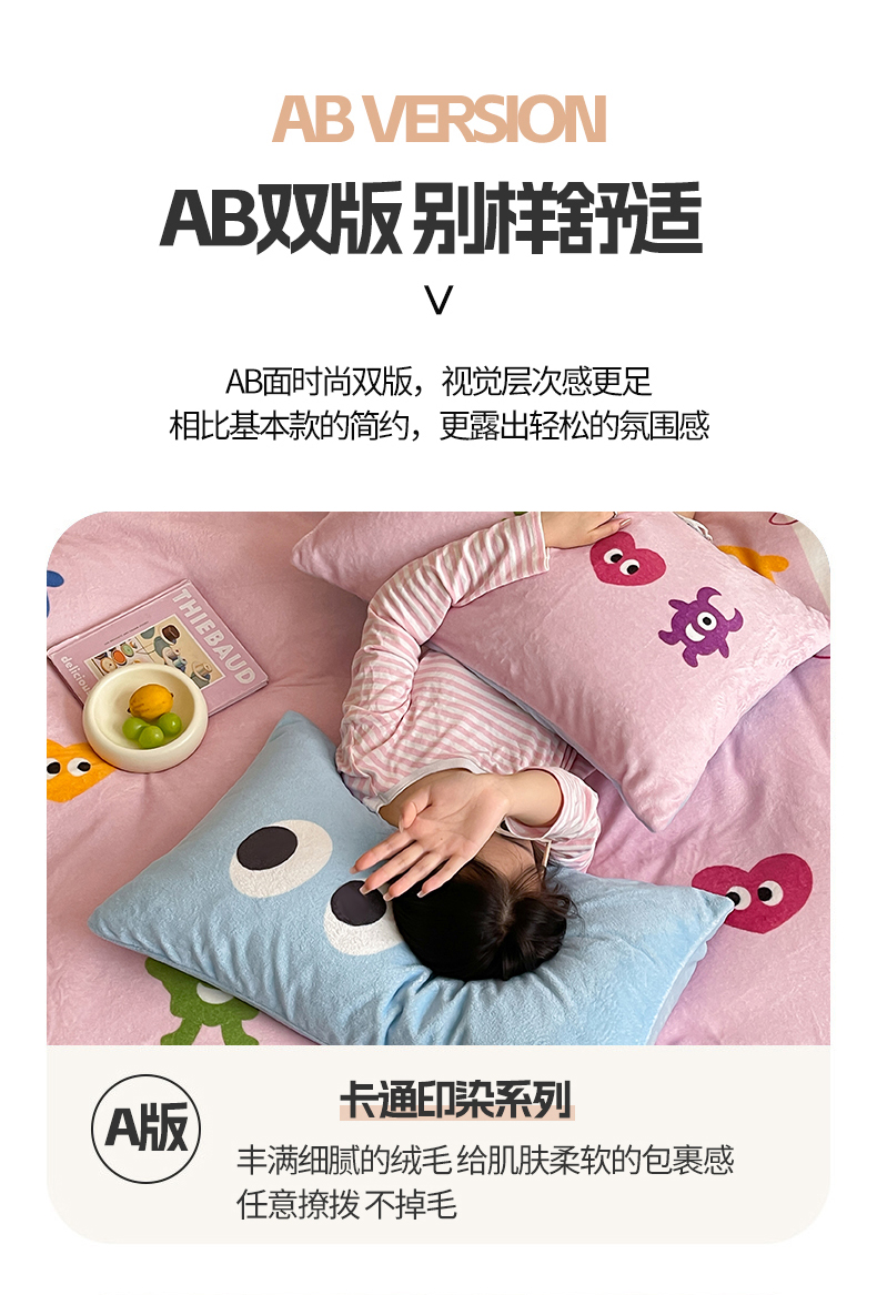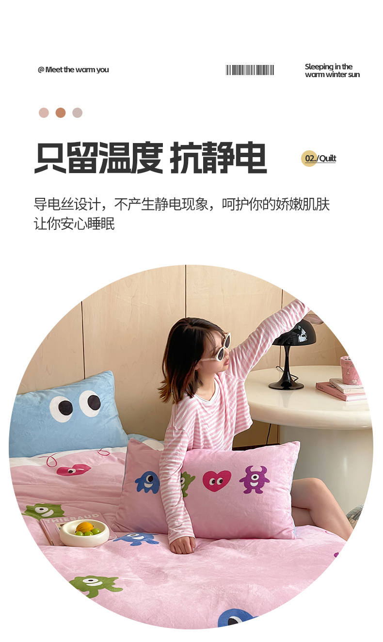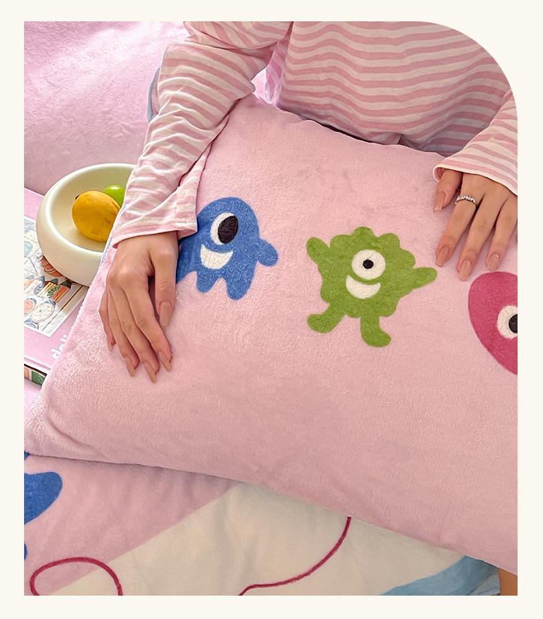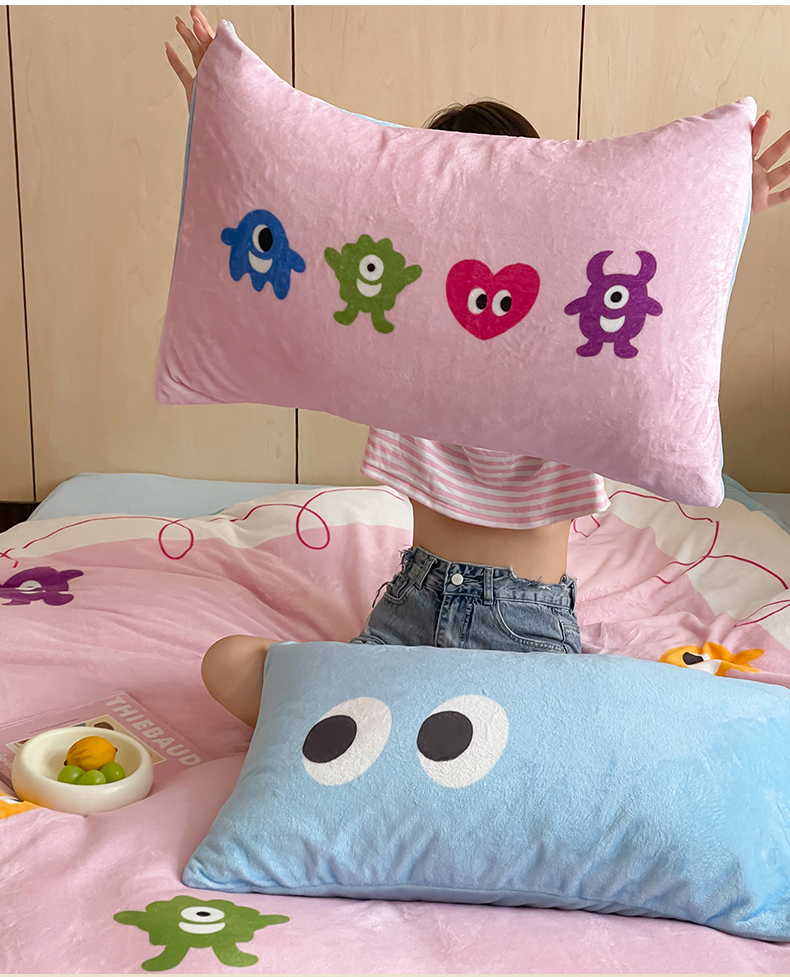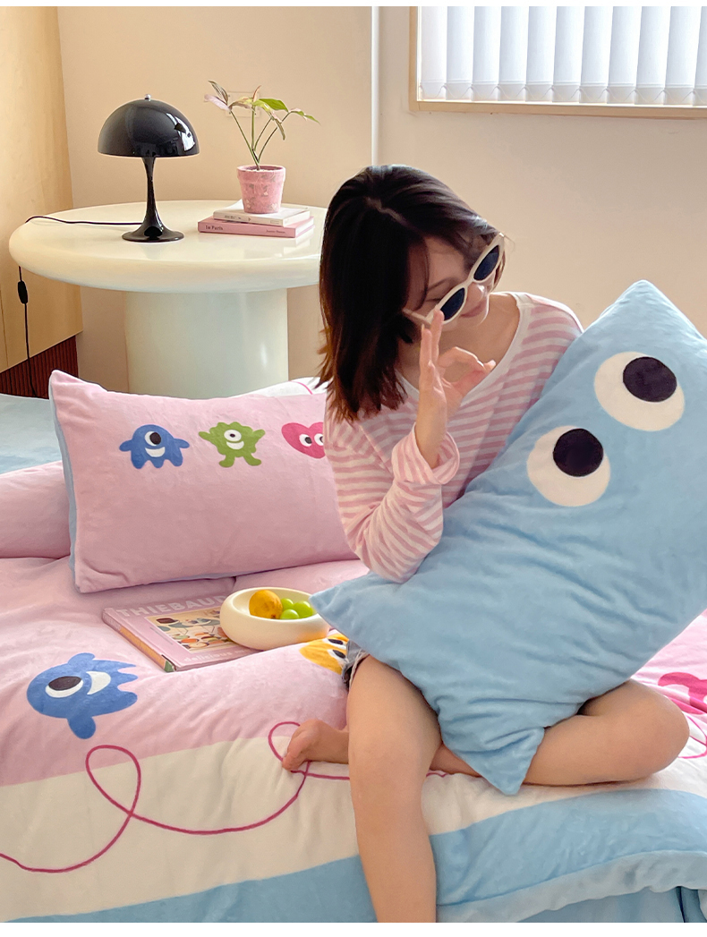 商品名称:羚羊语家纺 2024新款ins博主风牛奶绒四件套数码印花小红书爆款秋冬加厚宝宝绒婴儿绒法莱绒法兰绒珊瑚绒三件套 小怪兽