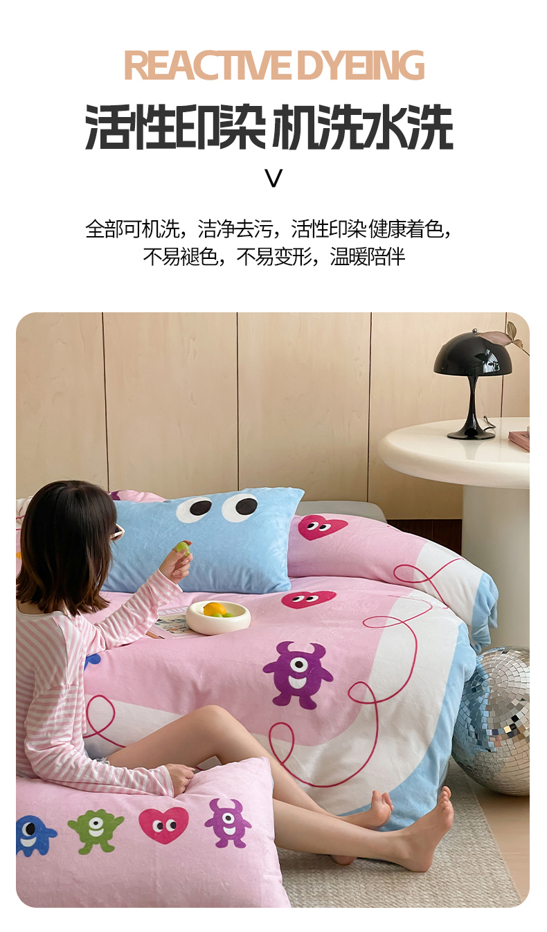 羚羊语家纺 2024新款ins博主风牛奶绒四件套数码印花小红书爆款秋冬加厚宝宝绒婴儿绒法莱绒法兰绒珊瑚绒三件套 小怪兽
