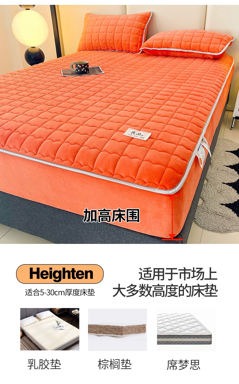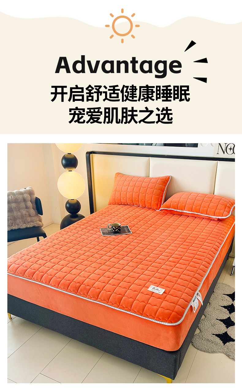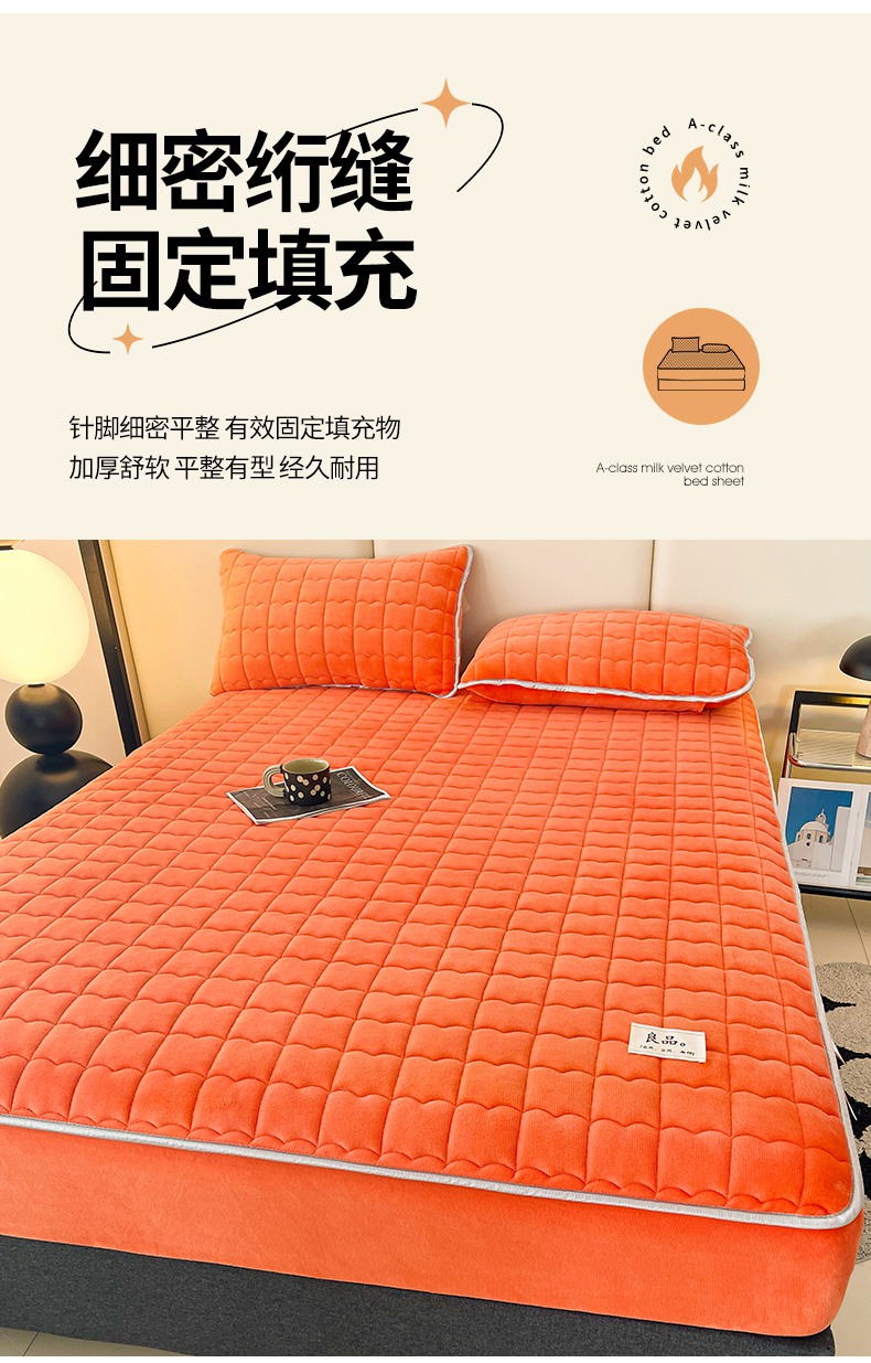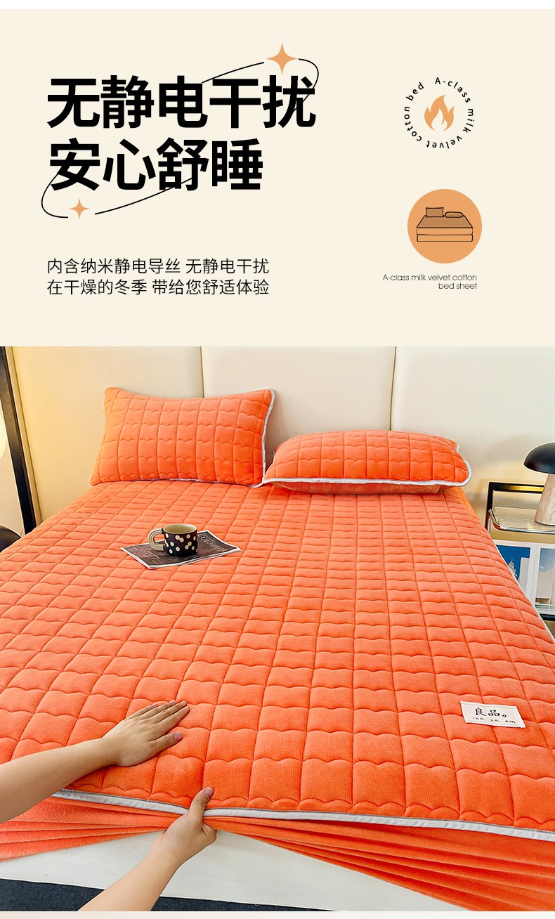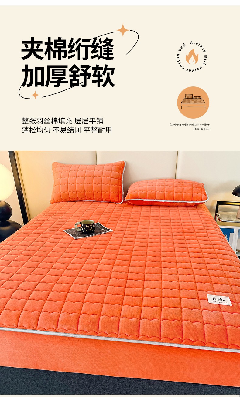 恒爱家纺 2024新款A类良品牛奶绒夹棉床笠 良品-阳光橙
