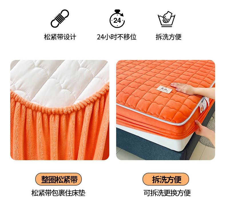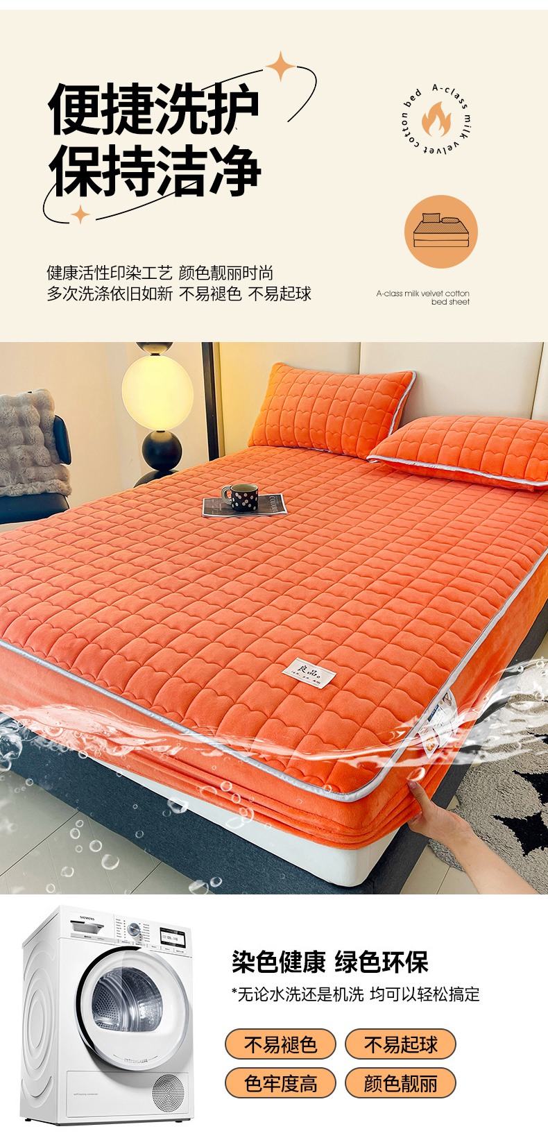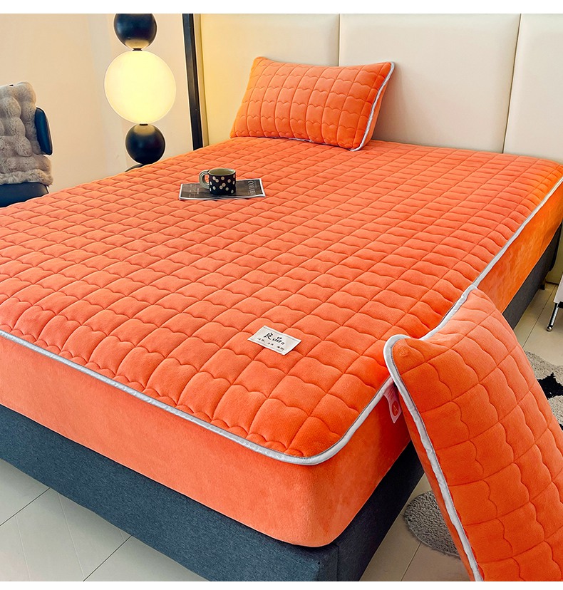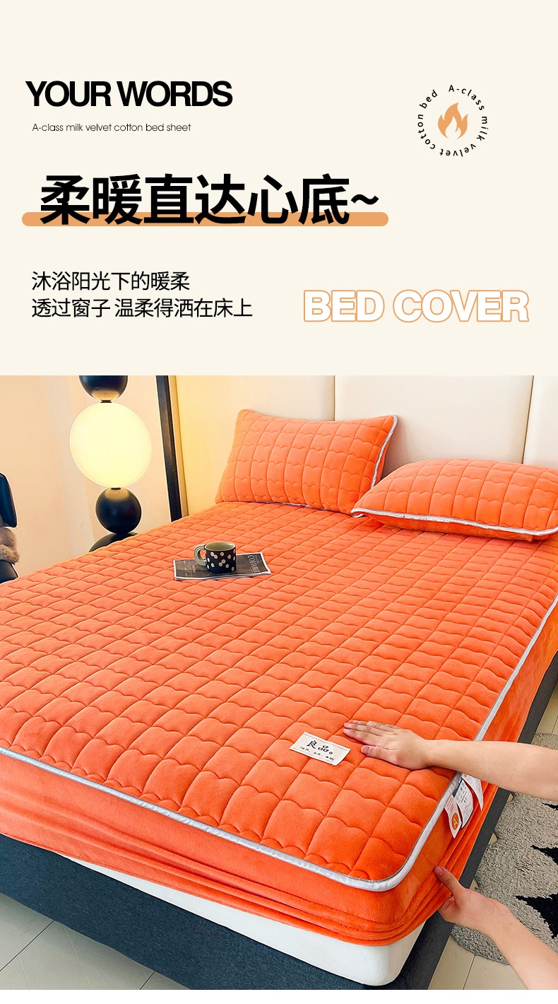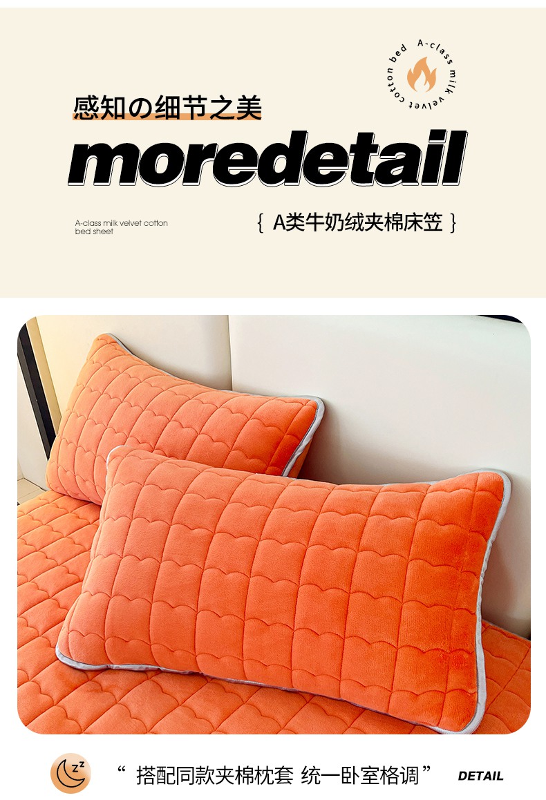 恒爱家纺 2024新款A类良品牛奶绒夹棉床笠 良品-阳光橙
