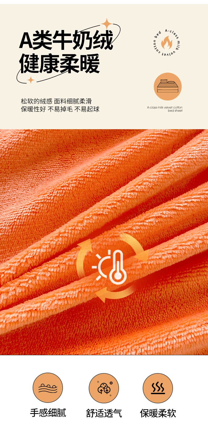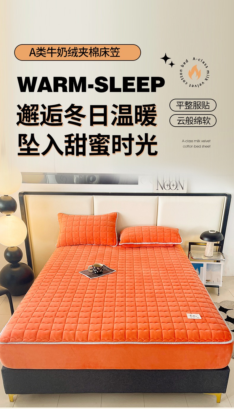 • 91家纺网 家纺一手货源 找家纺 恒爱家纺 2024新款A类良品牛奶绒夹棉床笠 良品-阳光橙