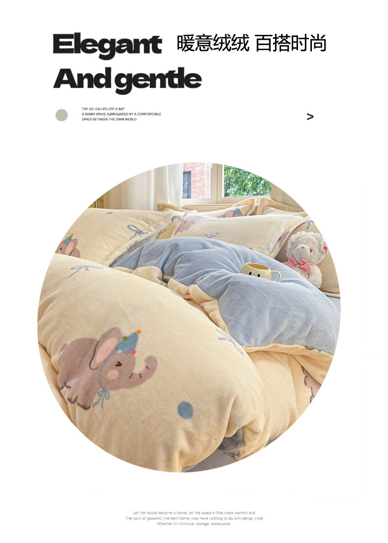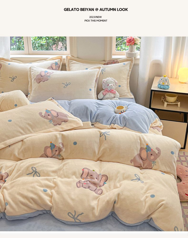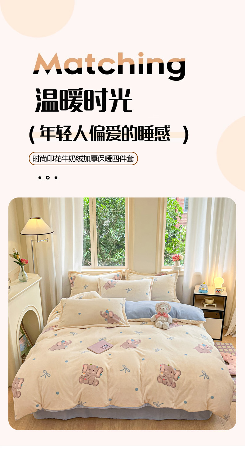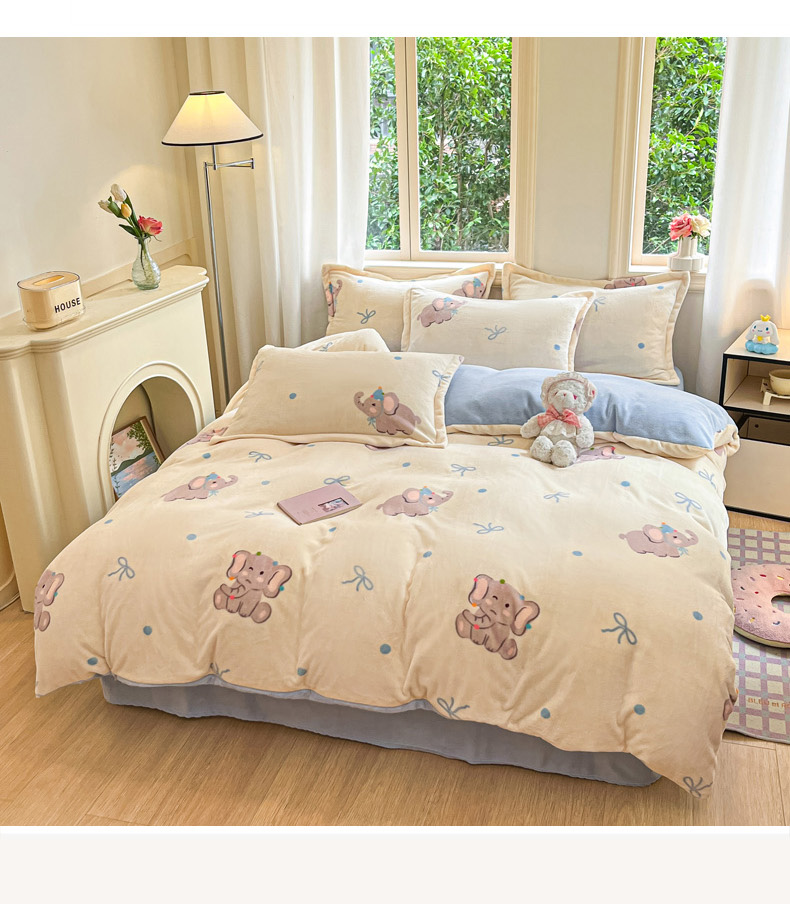 当前位置: 91家纺网 > 商品网购 > 床品套件 > 四件套 > 牛奶绒四件套 > 沐慕 2024新款200g加厚牛奶绒四件套 可爱小象