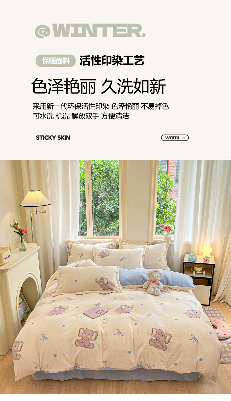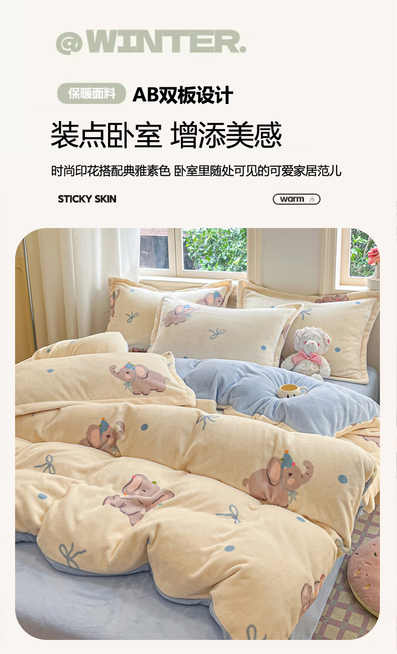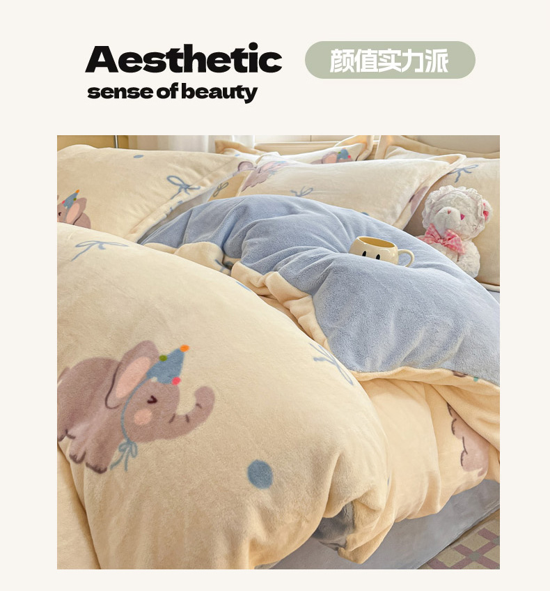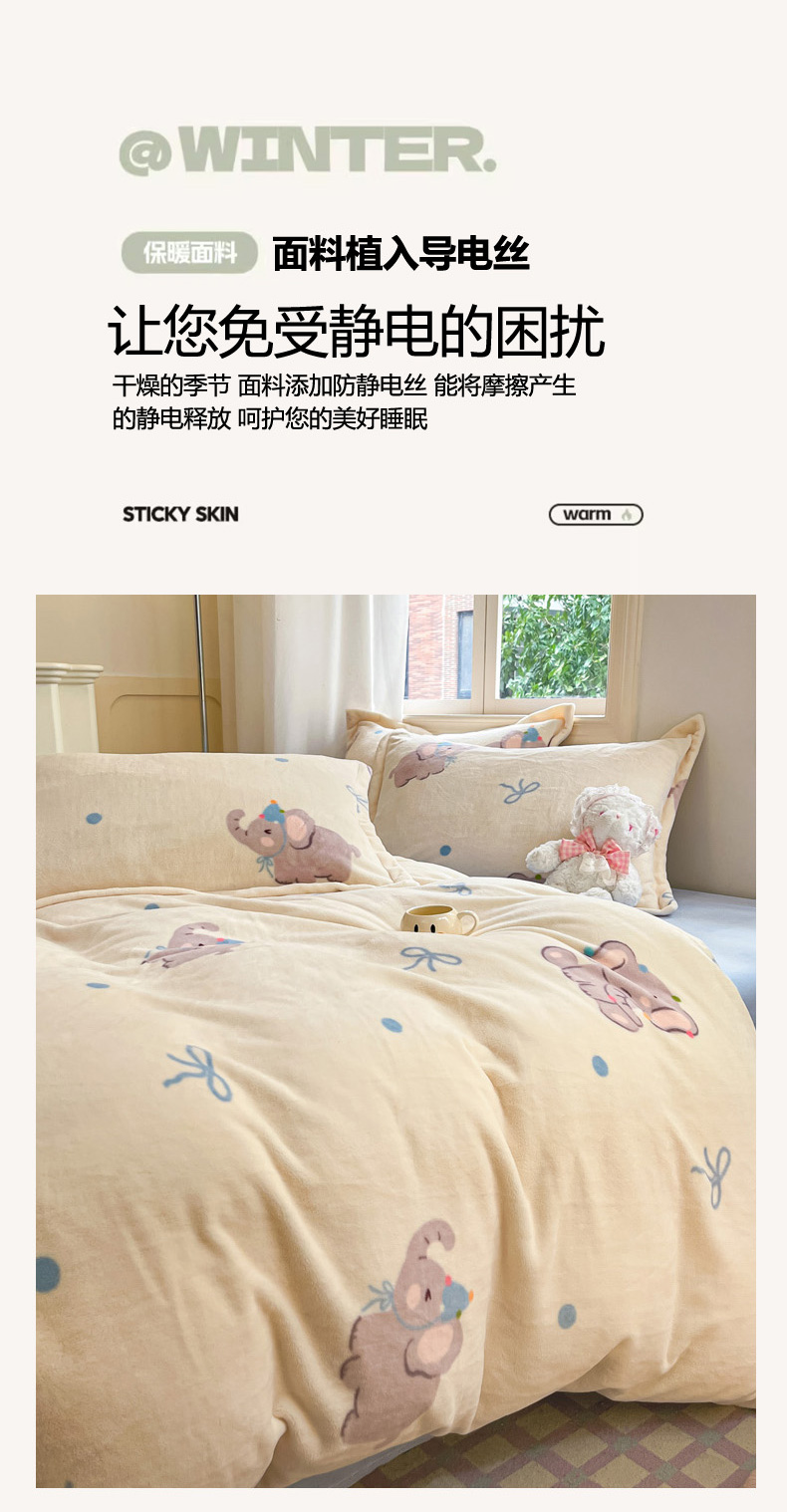 当前位置: 91家纺网 > 商品网购 > 床品套件 > 四件套 > 牛奶绒四件套 > 沐慕 2024新款200g加厚牛奶绒四件套 可爱小象