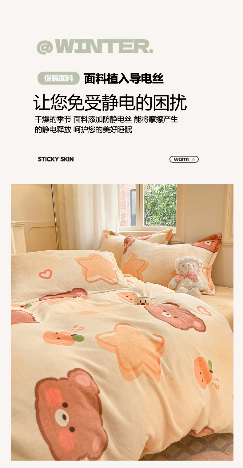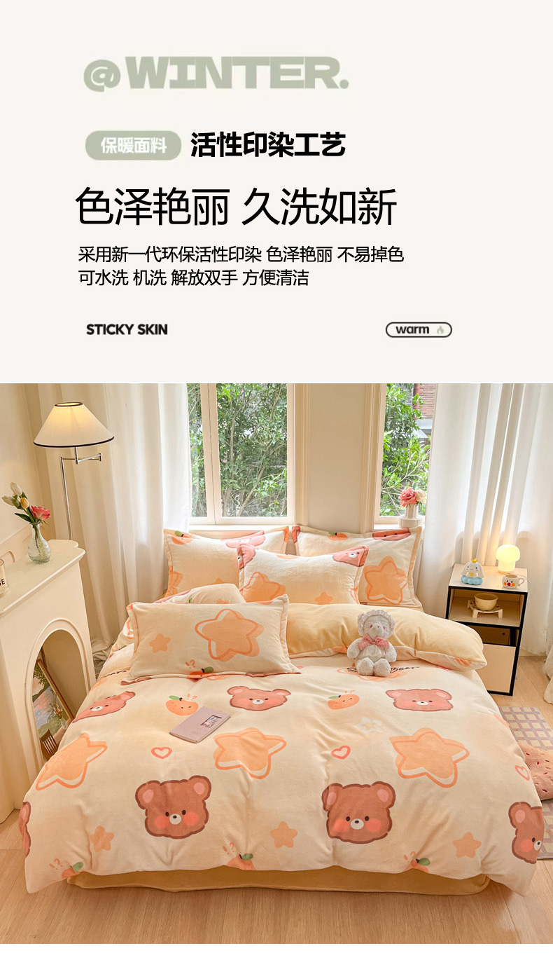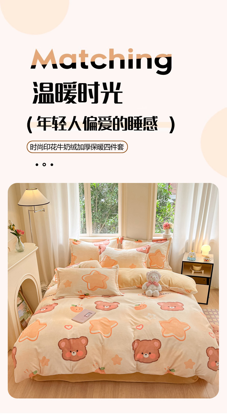 当前位置: 91家纺网 > 商品网购 > 床品套件 > 四件套 > 牛奶绒四件套 > 沐慕 2024新款200g加厚牛奶绒四件套 星星熊