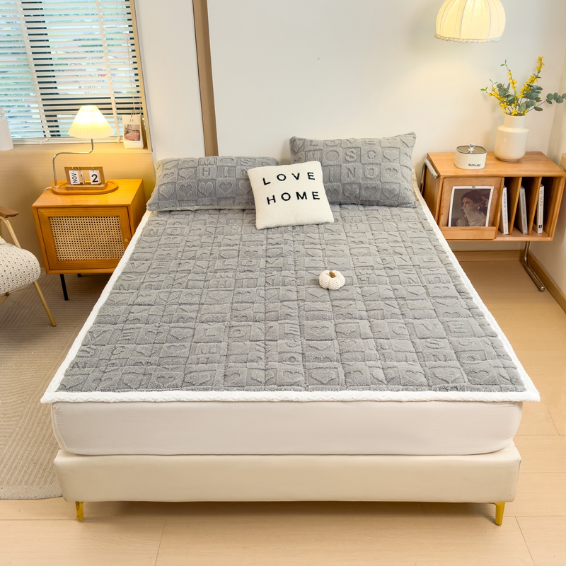 商品名称:希廷顿 2024新款高克重塔芙绒床护垫 爱心-绅士灰