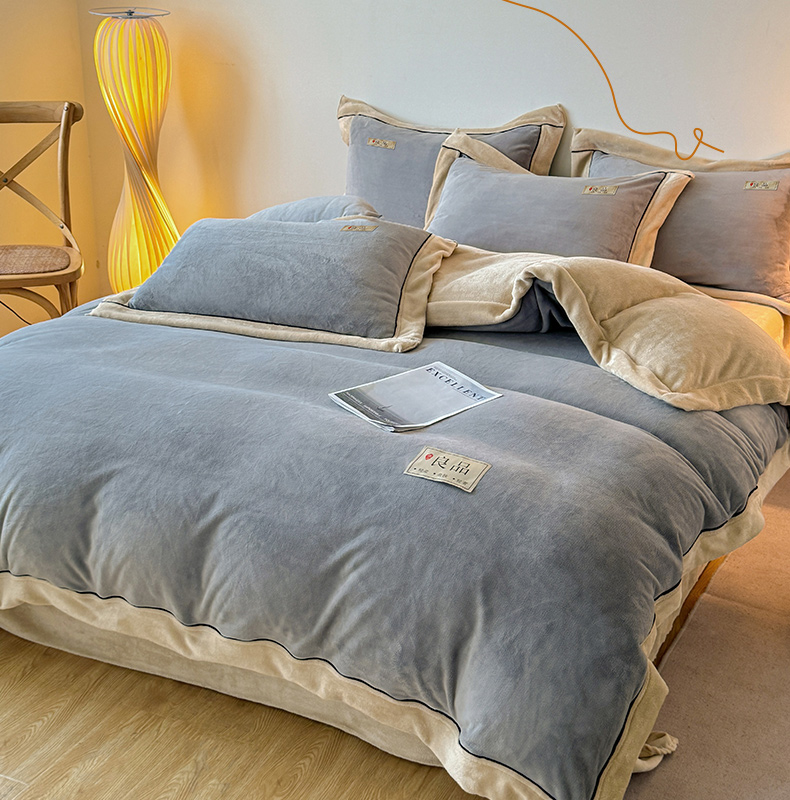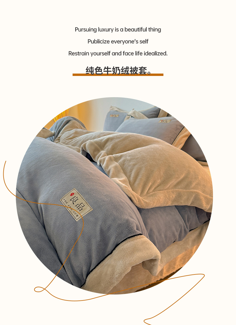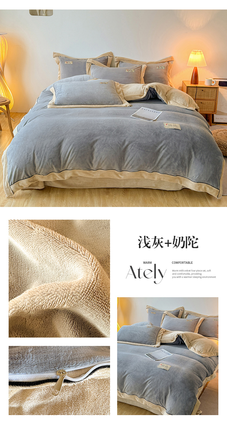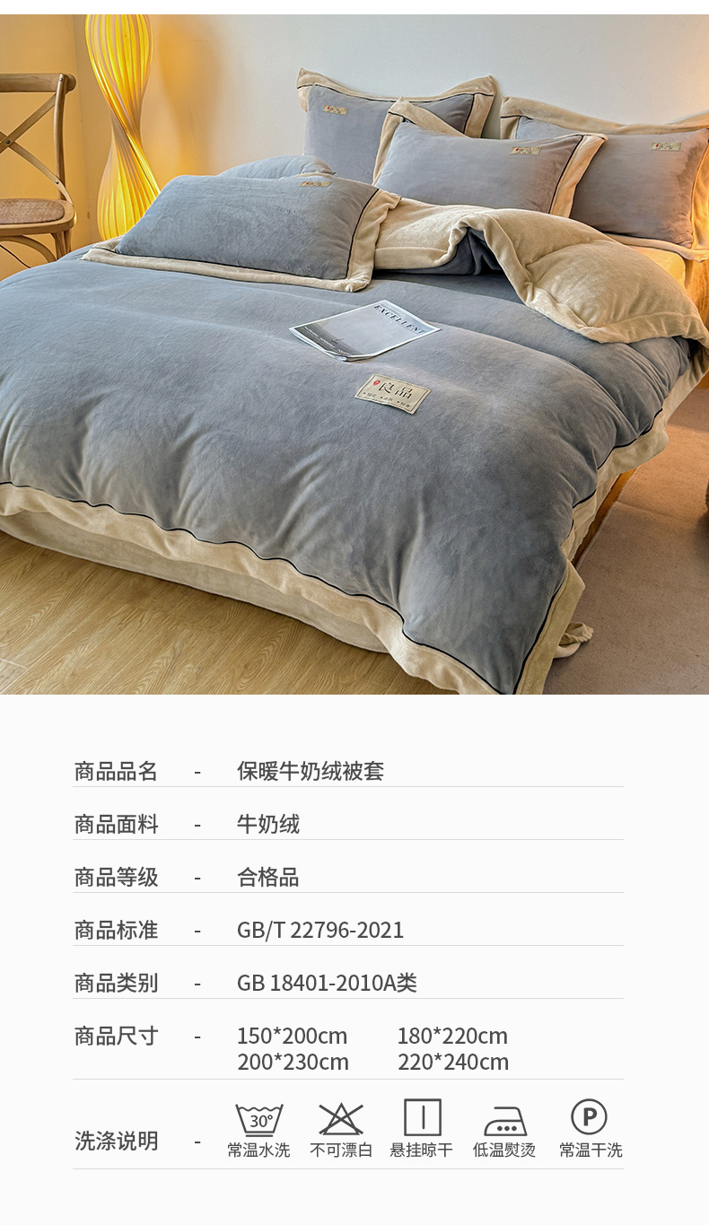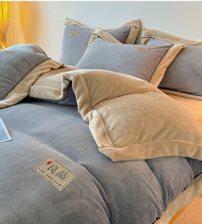商品名称:全季家居 2024新款A类良品纯色双拼牛奶绒高克重加厚保暖被套单件 浅灰+奶陀