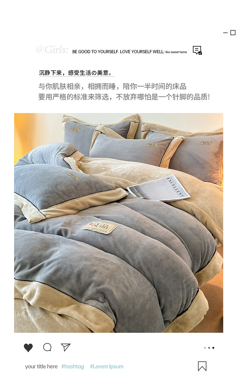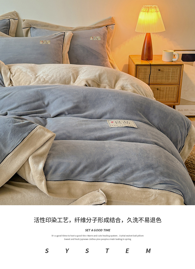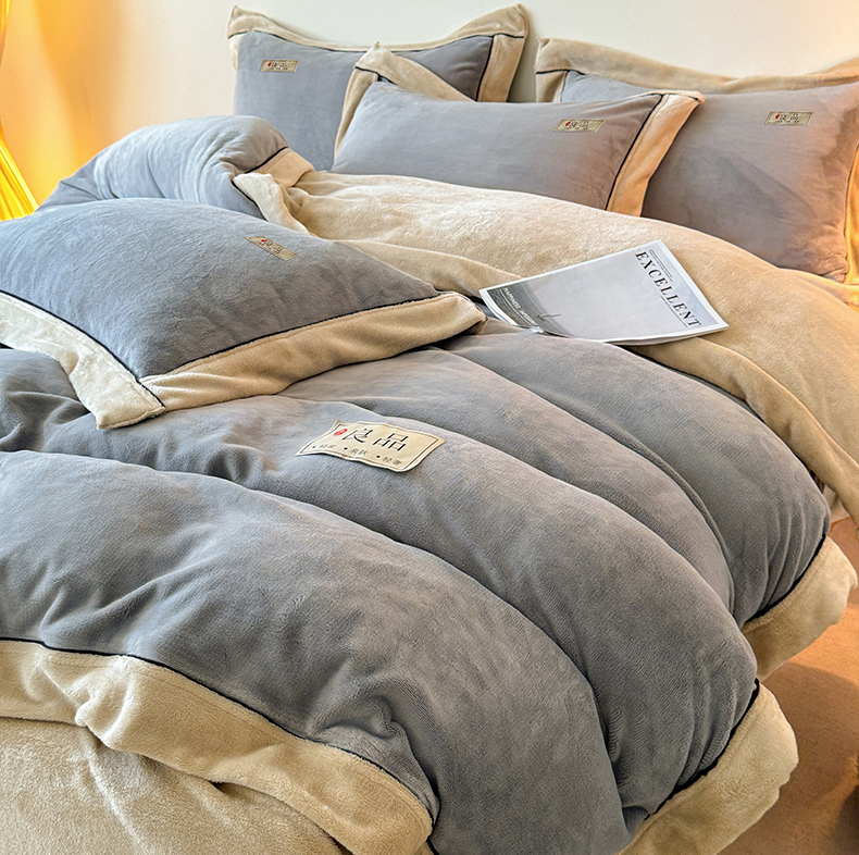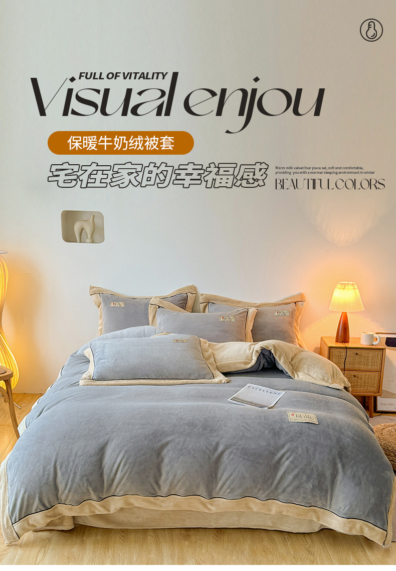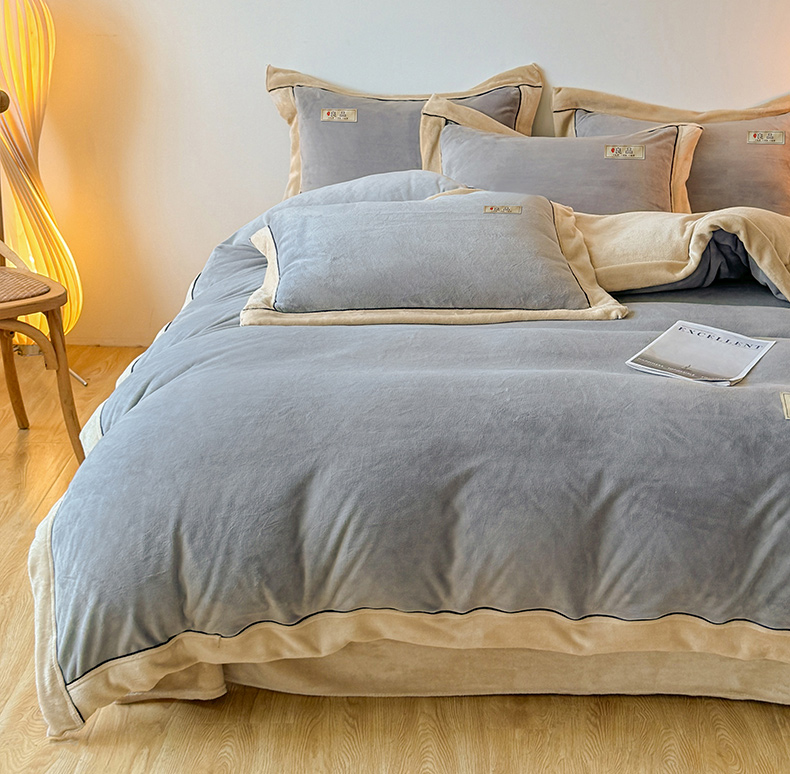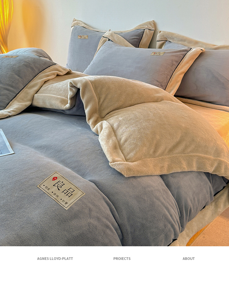 商品名称:全季家居 2024新款A类良品纯色双拼牛奶绒高克重加厚保暖被套单件 浅灰+奶陀