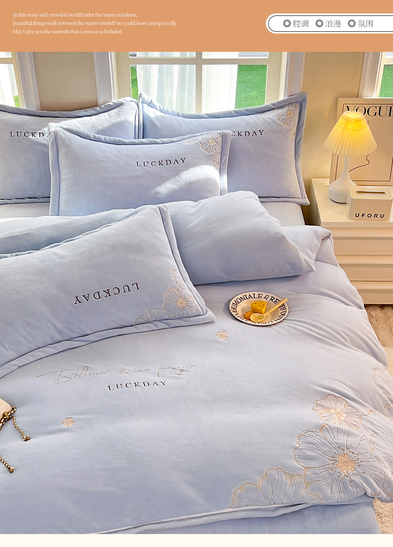 (总)绒棉世家 2025新款贴布绣A类牛奶绒高克重四件套-啦布布,啦布布