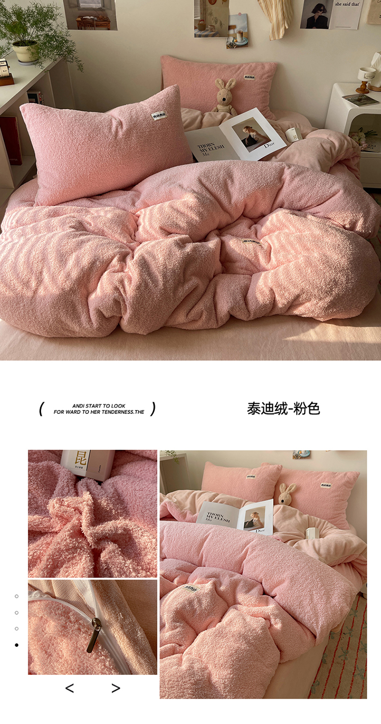 当前位置: 91家纺网 > 商品网购 > 床品套件 > 四件套 > 牛奶绒四件套 > 十里居 2024新款泰迪绒牛奶绒刺绣贴标四件套 泰迪绒-粉色