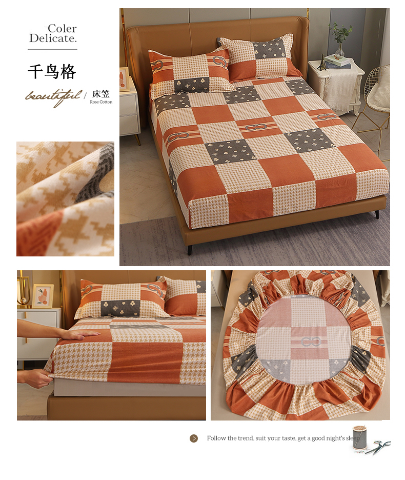 晶缦家纺 2024新款典雅系-全棉活性磨毛多规格单品床笠 千鸟格