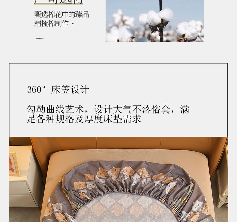 晶缦家纺 2024新款典雅系-全棉活性磨毛多规格单品床笠 寻梦
