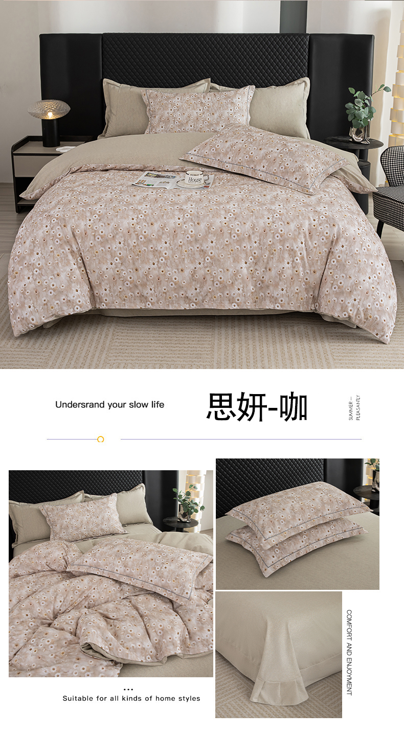 2024新款全棉加厚长绒棉数码印花四件套 思妍-咖