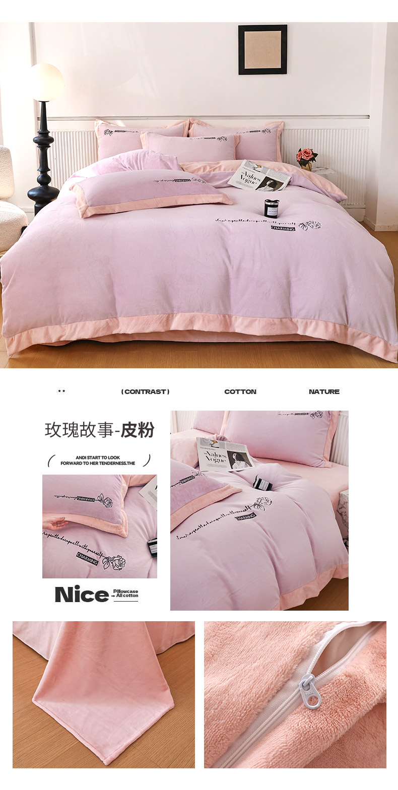 商品名称:大渔生活 2025新款牛奶绒刺绣四件套-玫瑰故事 玫瑰故事-皮粉