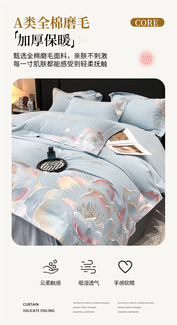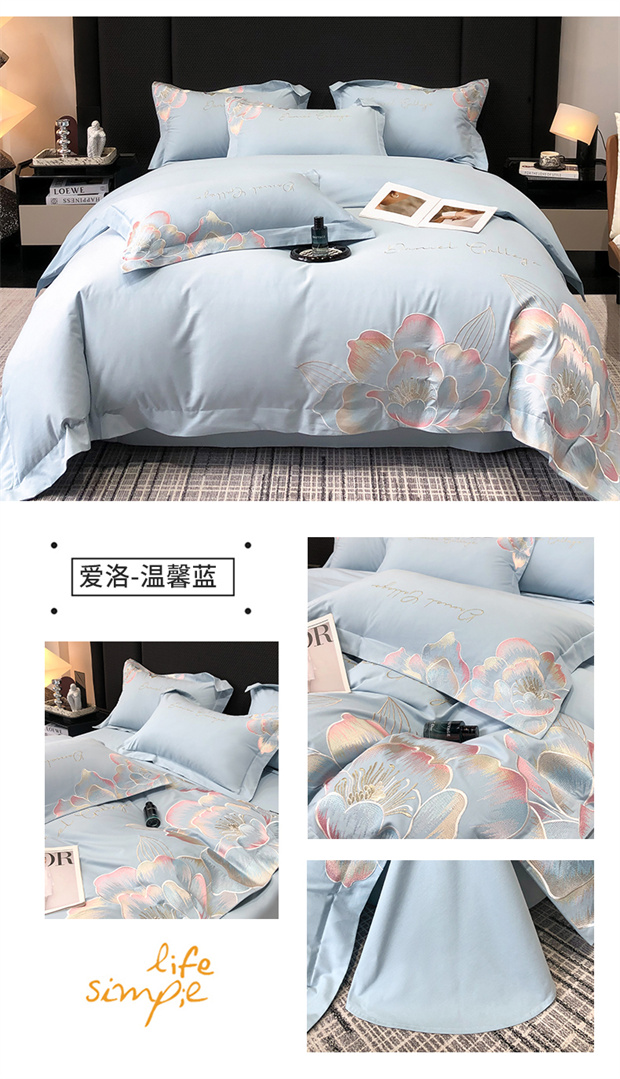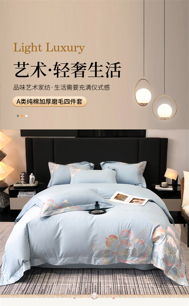 当前位置: 91家纺网 > 商品网购 > 床品套件 > 四件套 > 普通磨毛四件套 > 家居1号家纺 2024新款全棉磨毛刺绣四件套-爱洛 温馨蓝