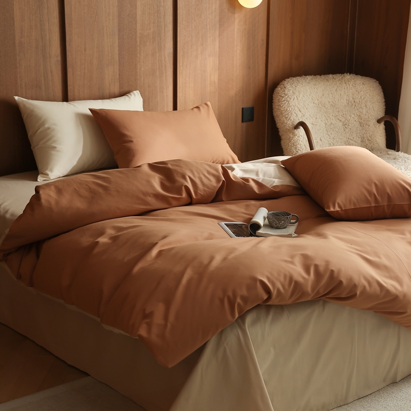 当前位置: 91家纺网 > 商品网购 > 床品套件 > 四件套 > 长绒棉四件套 > 久典家居 2024新款100支长绒棉磨毛纯色双拼四件套 探戈橘双拼