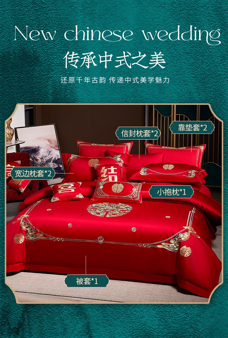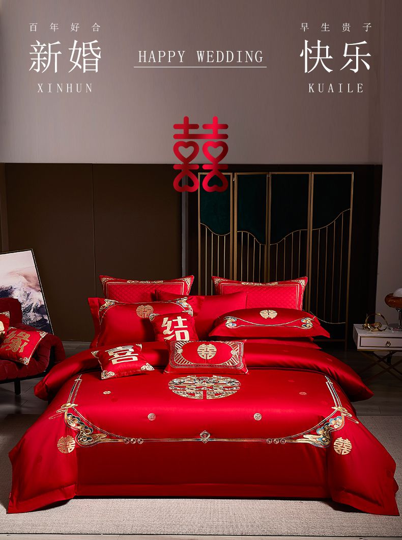 当前位置: 91家纺网 > 商品网购 > 床品套件 > 四件套 > 长绒棉四件套 > 高大尚婚庆馆 2025秋冬新款长绒棉臻棉系列婚庆款多件套 良辰吉日