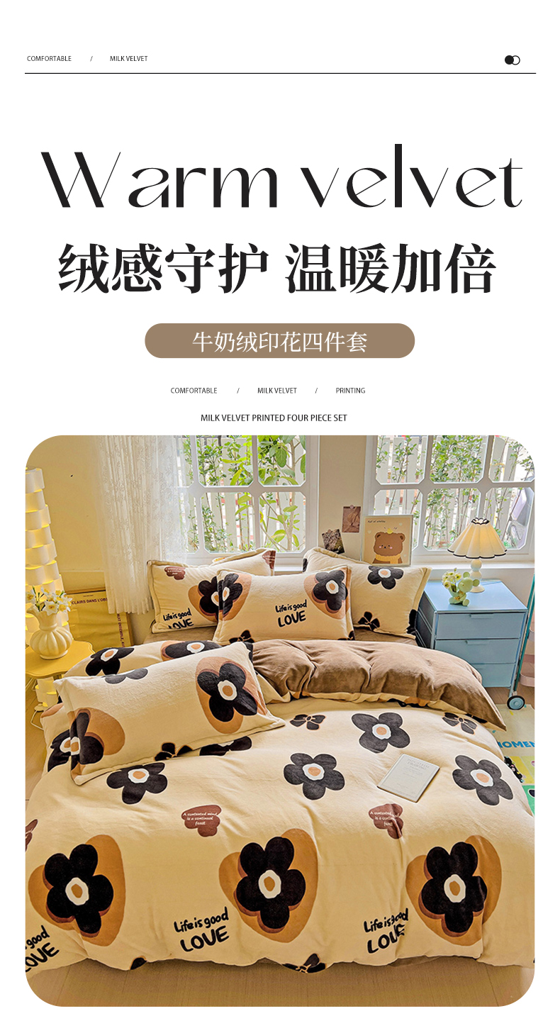 (总)卡普家居 2025新款加厚保暖牛奶绒系列--四件套,童趣时光,蝶舞格韵,粉熊猫,凯蒂乐园,萌萌熊,米兰风尚,森林小兔,幽兰花谷,童话星空,爱意满满,波波熊,波士顿,初夏花开,呆萌狗狗,花涧,花开物语,花漾,幻想,卡布林,快乐布鲁,蓝色梦想,浪漫玫瑰,满心欢喜,萌趣熊宝,慕斯,奶牛杯,欧风花影,千鸟格,秋日细雨,柔伊,甜酷,甜心,小煤球,星光汇,幸运兔,熊猫皮皮,芽蜜,郁金香,紫韵花开