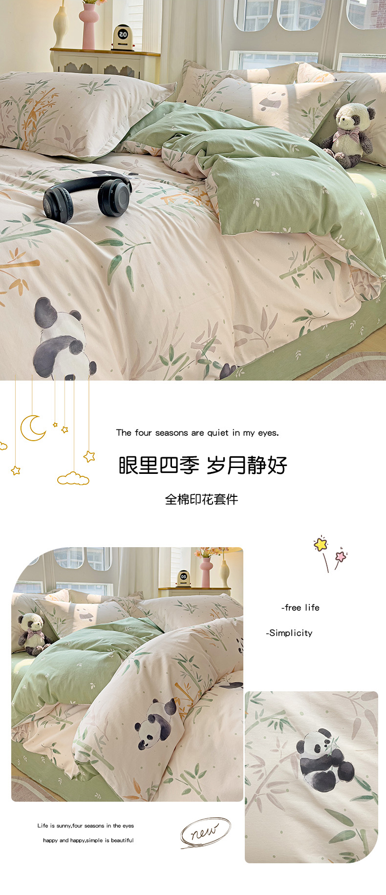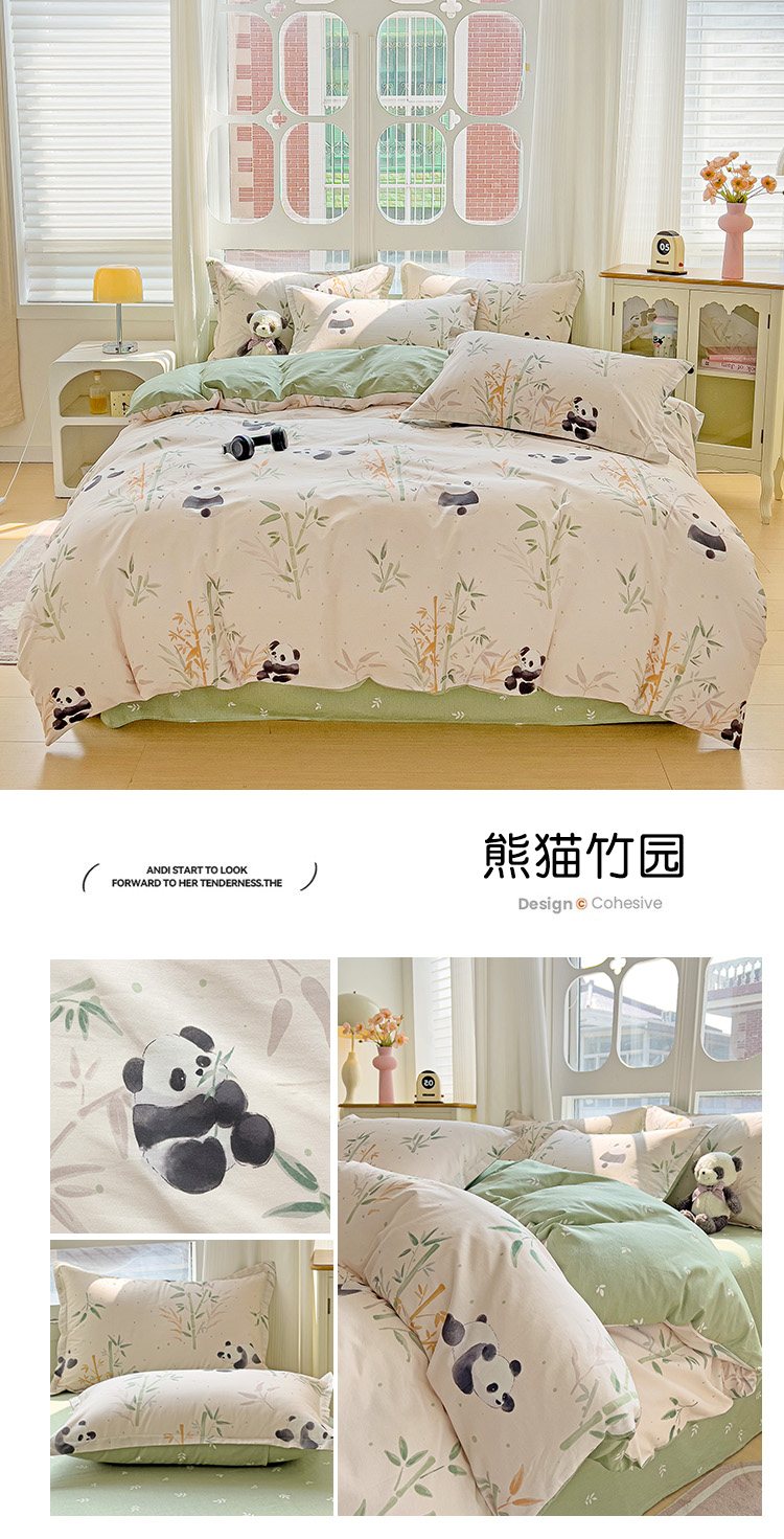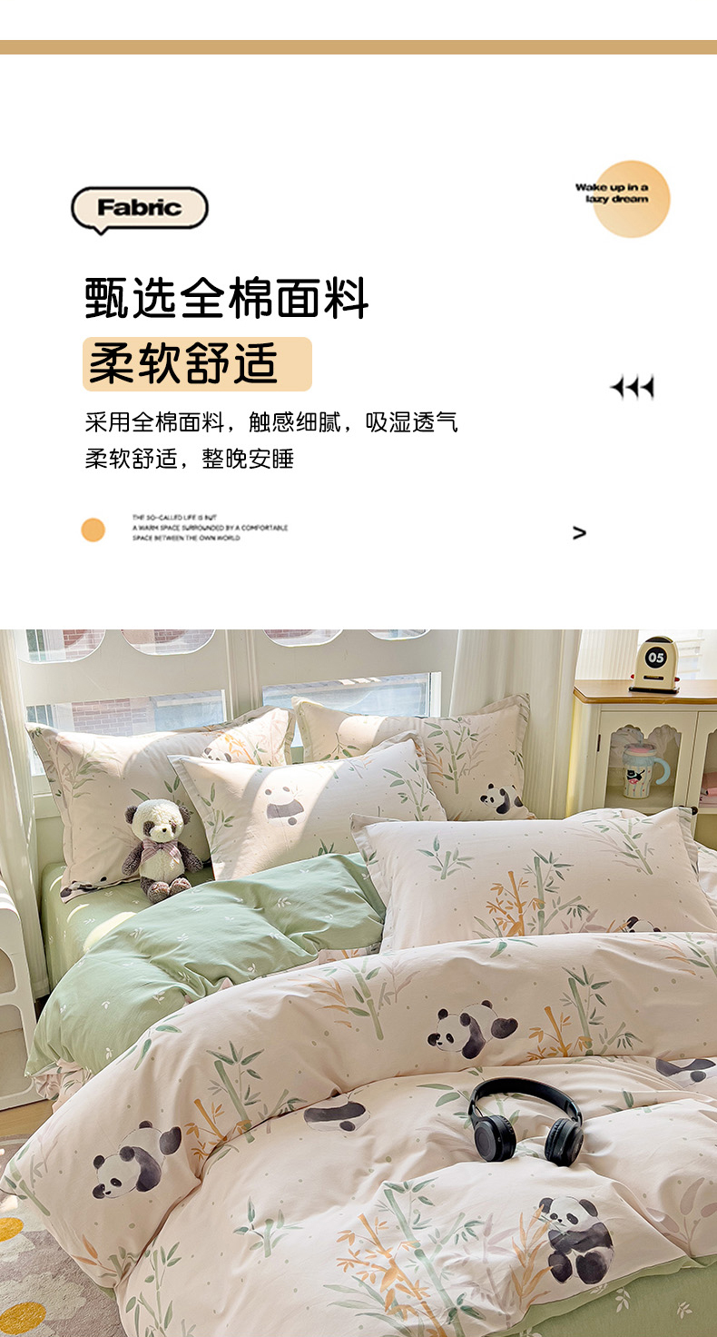 当前位置: 91家纺网 > 商品网购 > 床品套件 > 四件套 > 全棉普通四件套 > 暖芯优选 2025直播爆款全棉ins印花四件套纯棉床单床笠学生三件套9月上新 熊猫竹园
