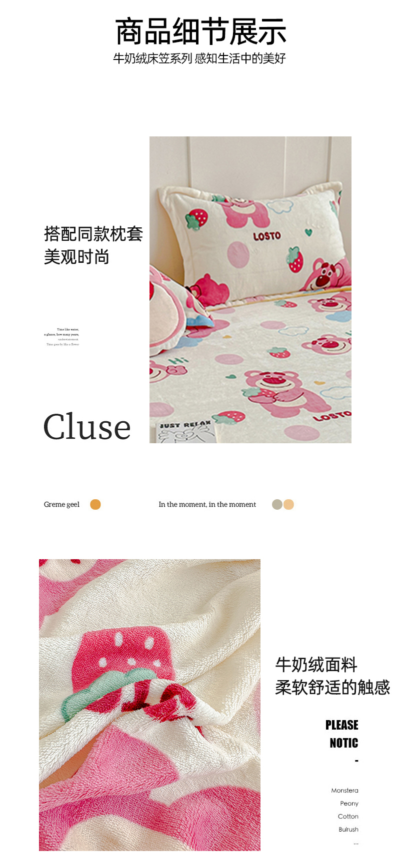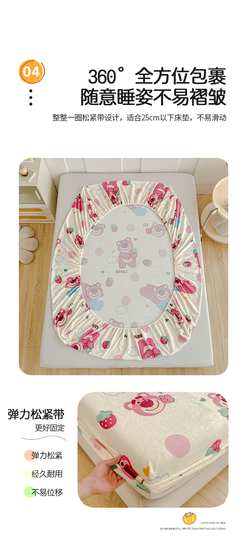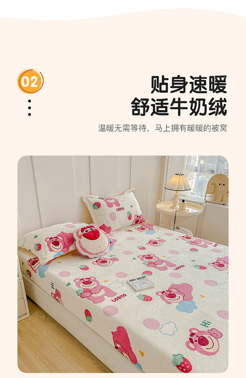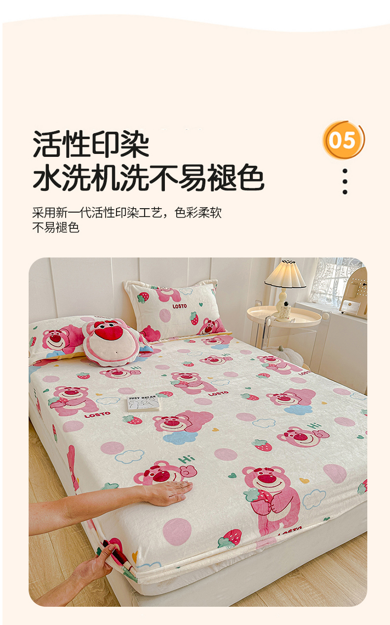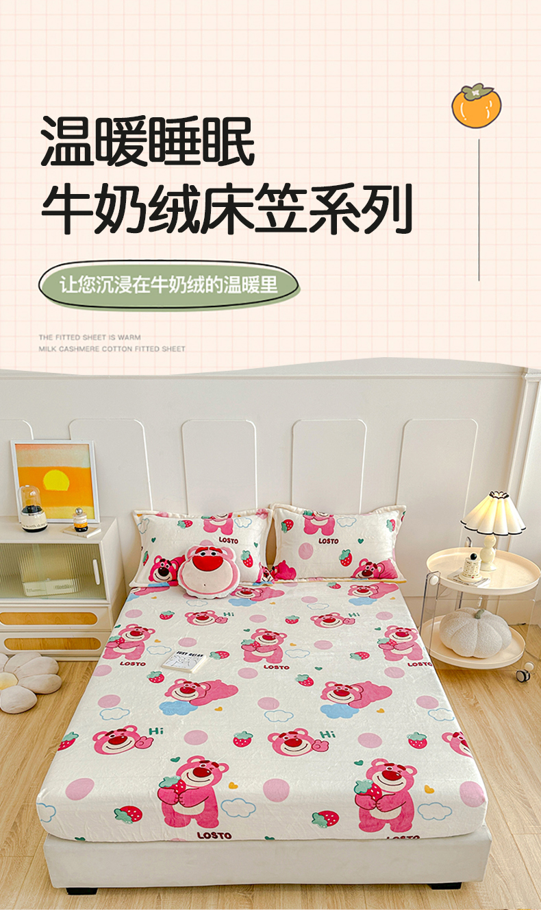 商品名称:卡普 2025新款牛奶绒印花单床笠 萌趣熊宝