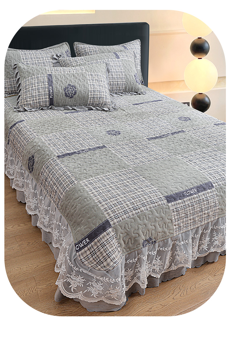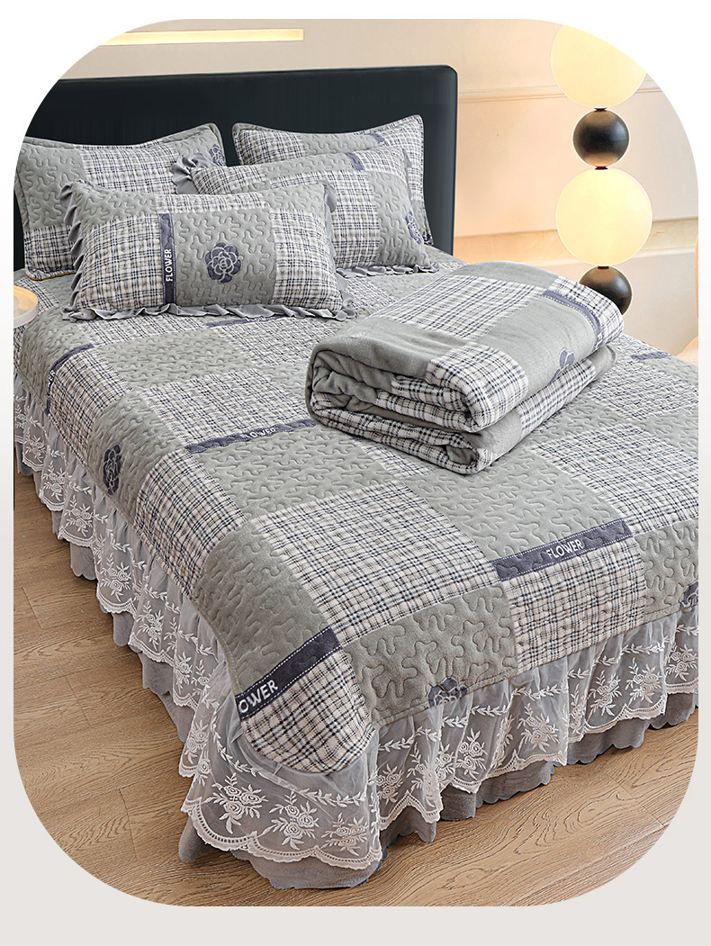 (总)梦柏家纺 2025新款韩式牛奶绒刺绣花边床盖四件套,风信紫,湖水蓝,浅草绿,蔷薇粉,樱花粉,月光白