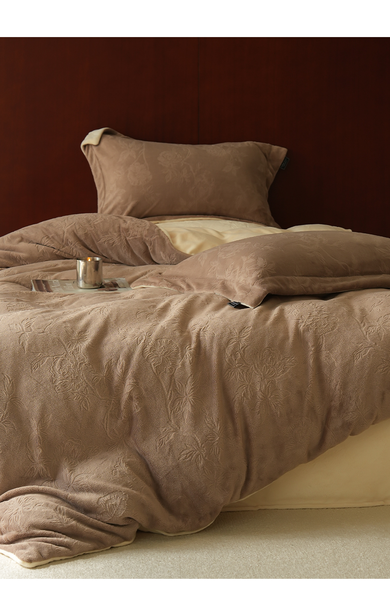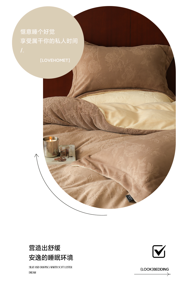 商品名称:三味舒屋 2025新款雕花牛奶绒四件套香榭丽系列 香榭丽咖