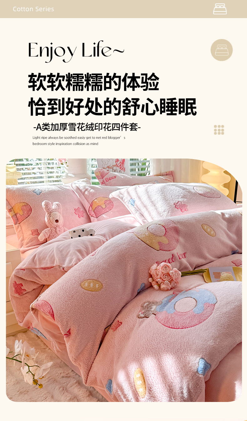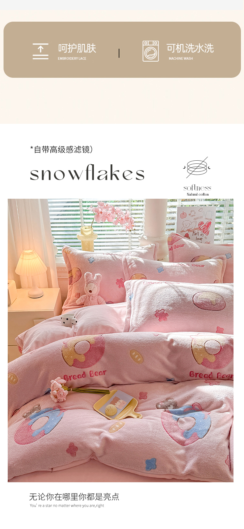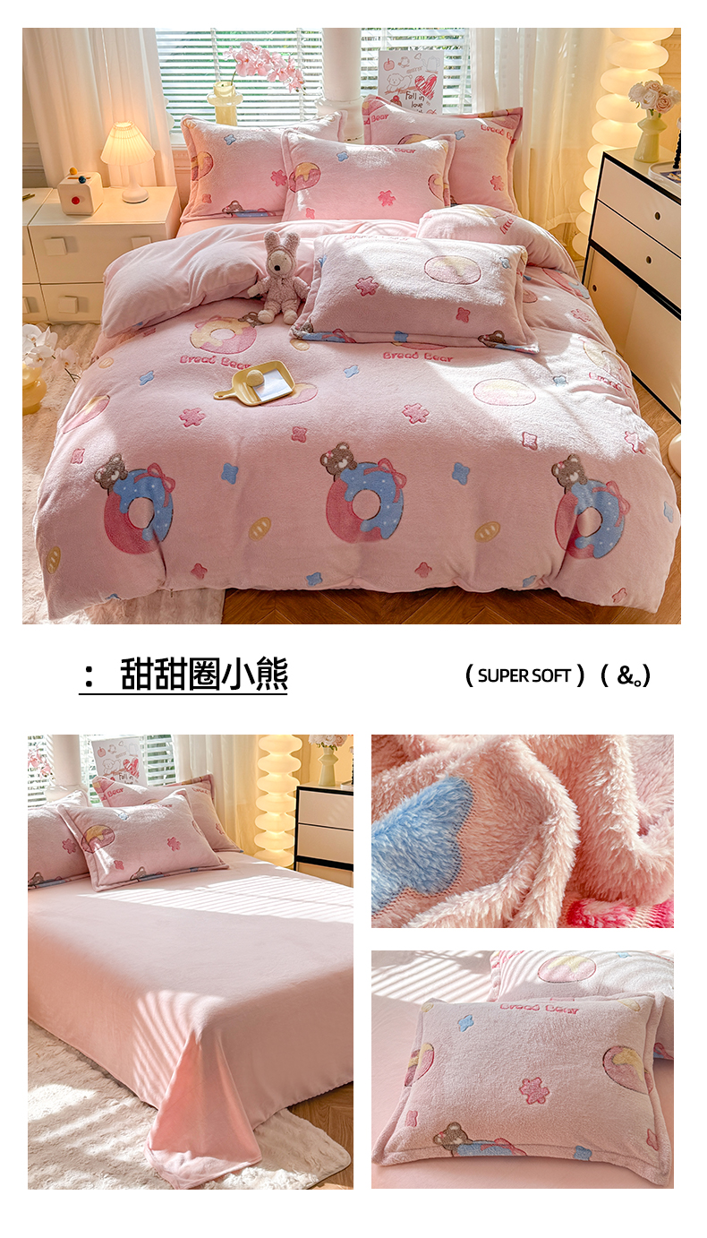 当前位置: 91家纺网 > 商品网购 > 床品套件 > 四件套 > 其它四件套 > 妖妖家纺 2024新款加厚雪花绒印花单品三件套四件套 甜甜圈小熊