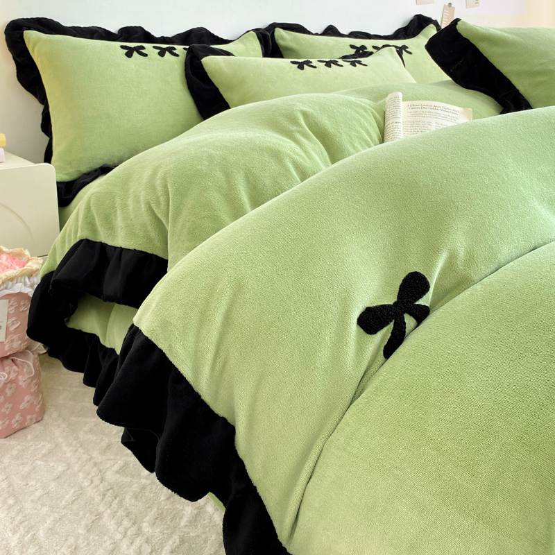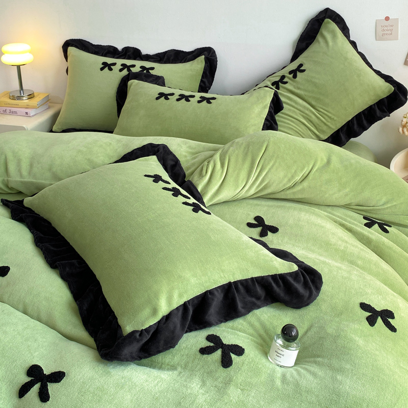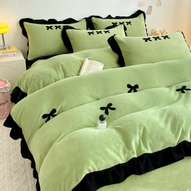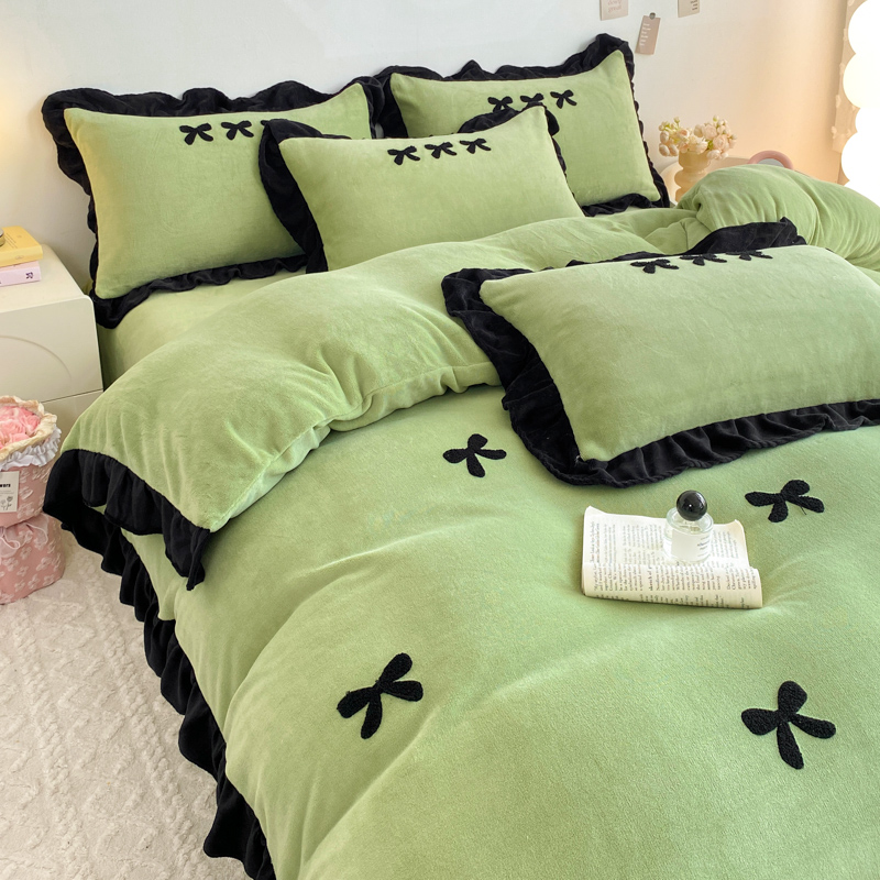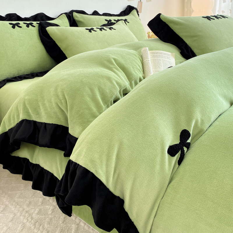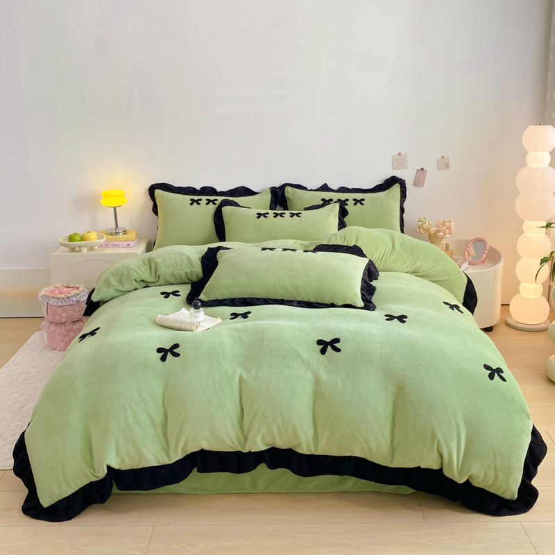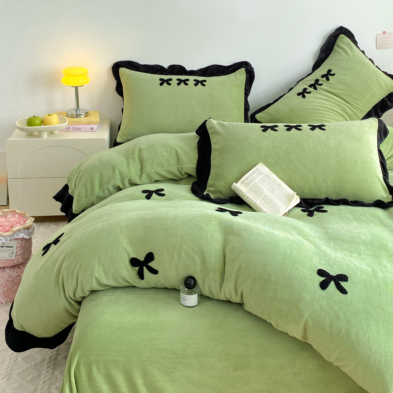 梦莱斯 2024新款黑边绣花牛奶绒四件套 蝴蝶结-绿