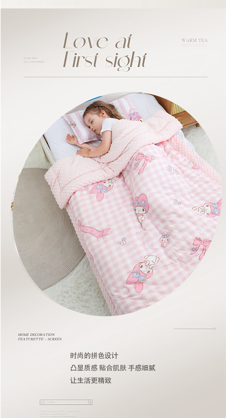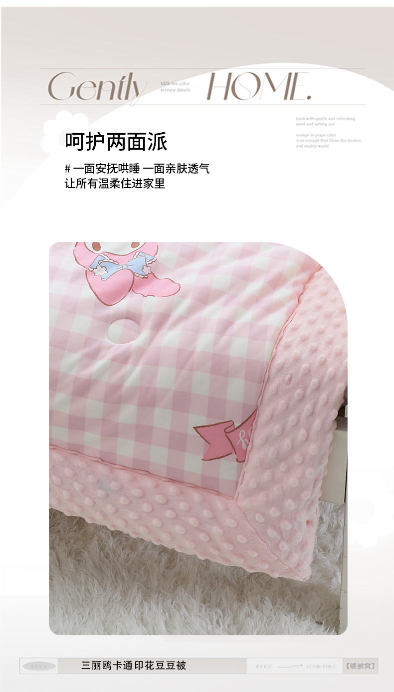 • 91家纺网 家纺一手货源 找家纺 鱼宝 2024新款三丽鸥针织棉豆豆被 粉格美乐蒂