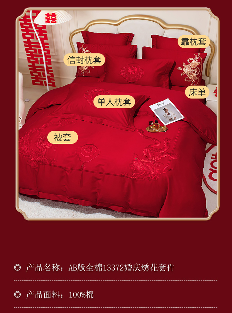 当前位置: 91家纺网 > 商品网购 > 床品套件 > 四件套 > 婚庆四件套 > 千禧家纺 2025新款全棉13372婚庆绣花系列龙凤情缘(本色)