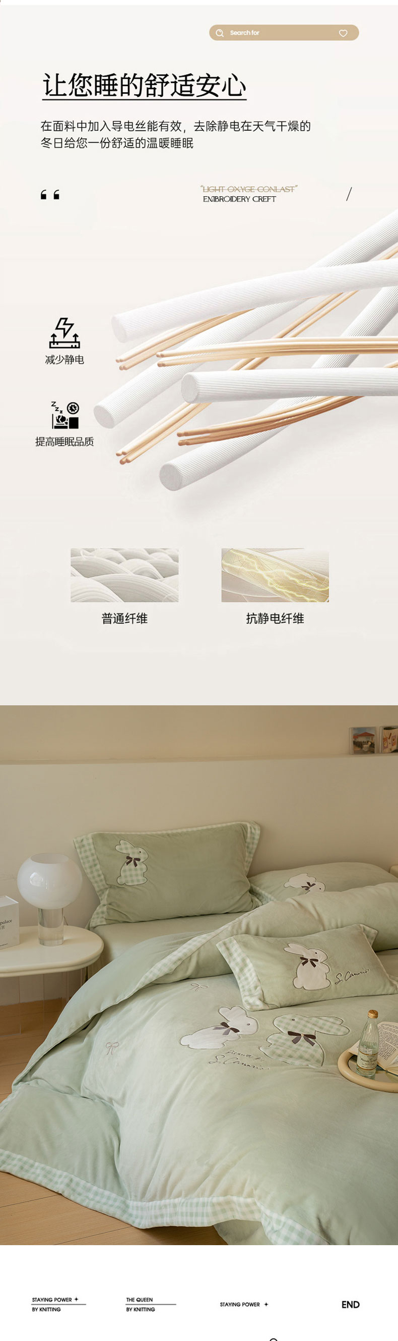 (总)FORTWO家纺原创设计(FOR TWO家纺) 2025新款230克牛奶绒绣花小清新四件套,咖啡猫,小萌兔