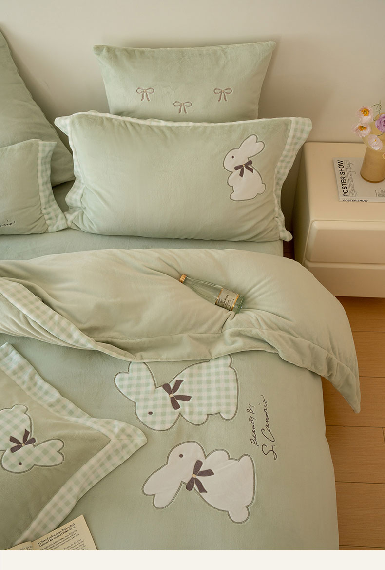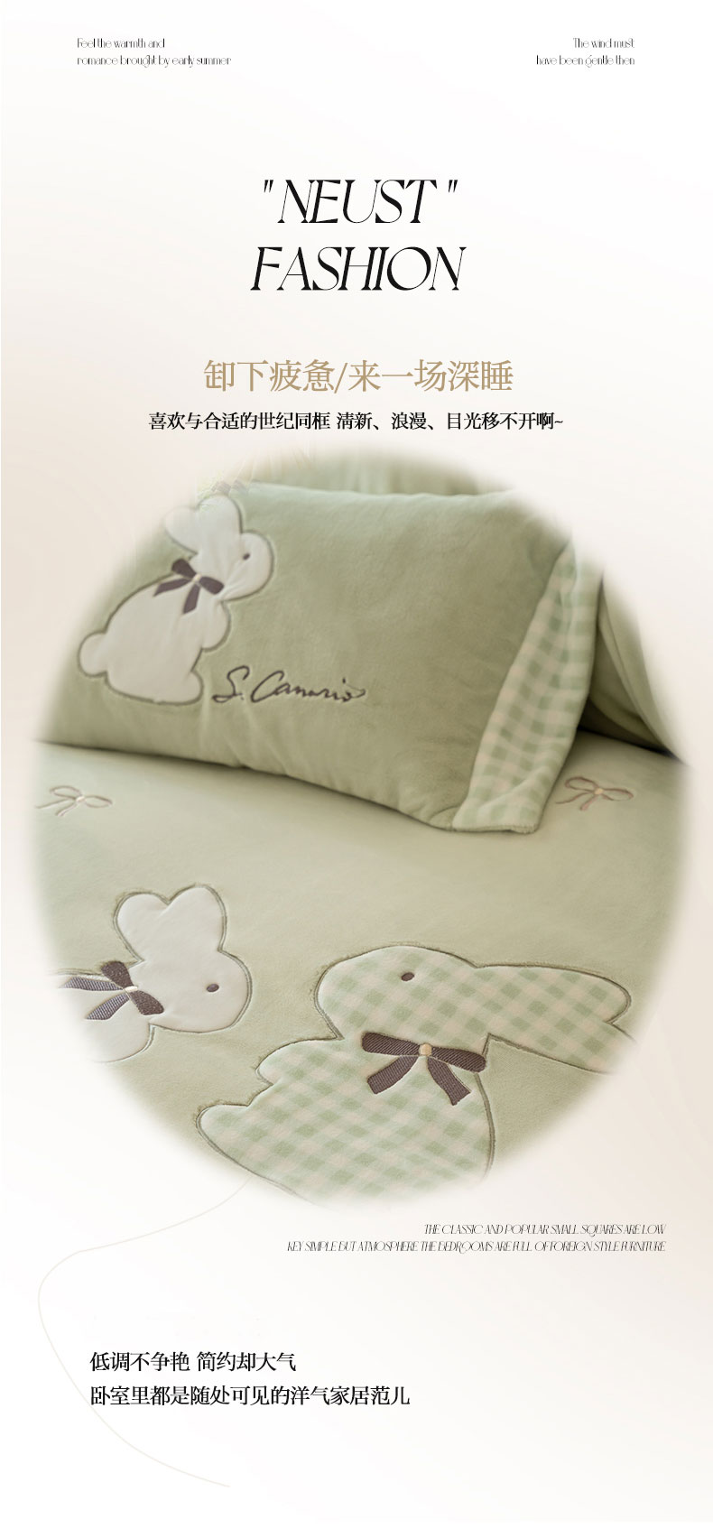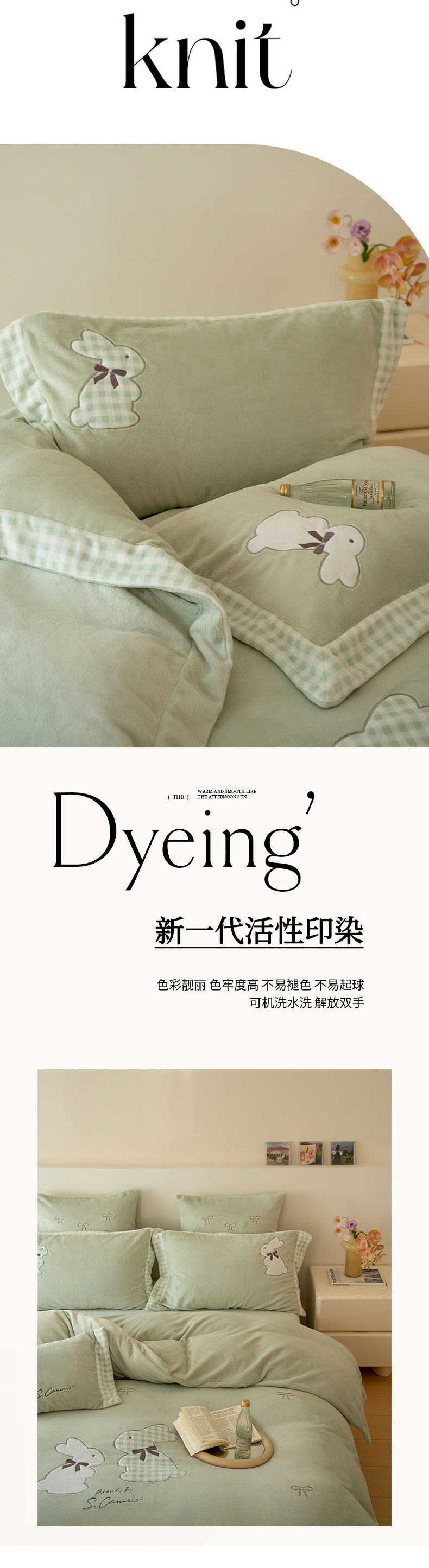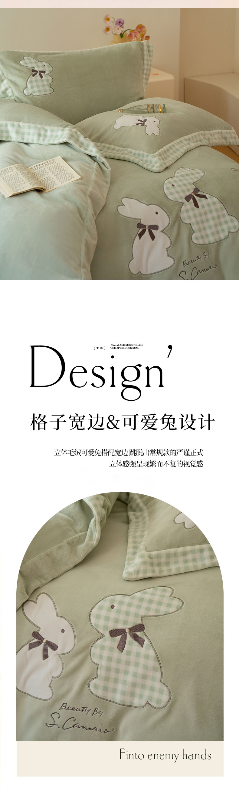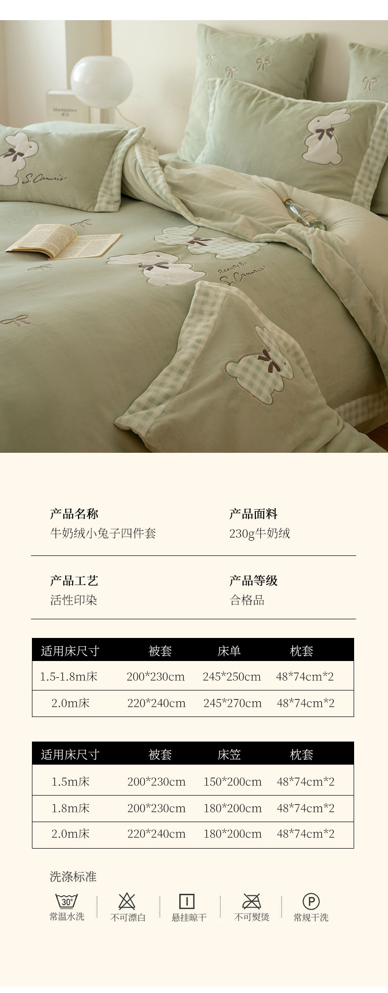 商品名称:(总)FORTWO家纺 2024新款230G牛奶绒拼角款四件套-小兔日记