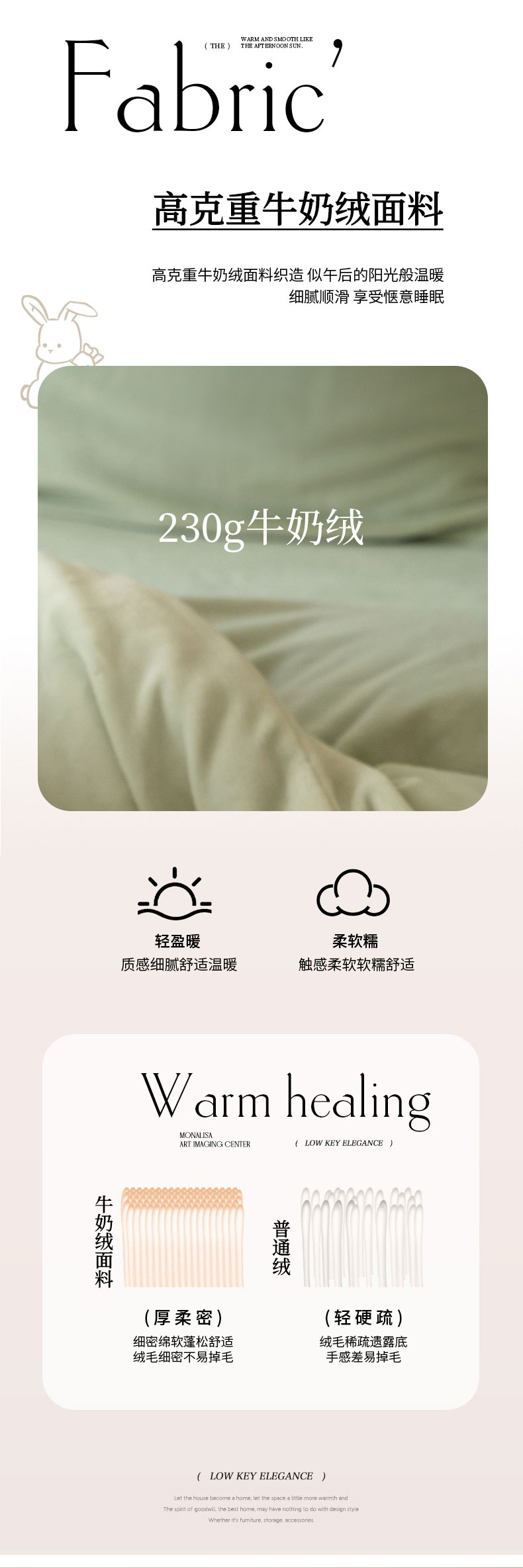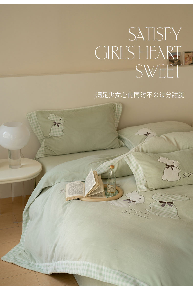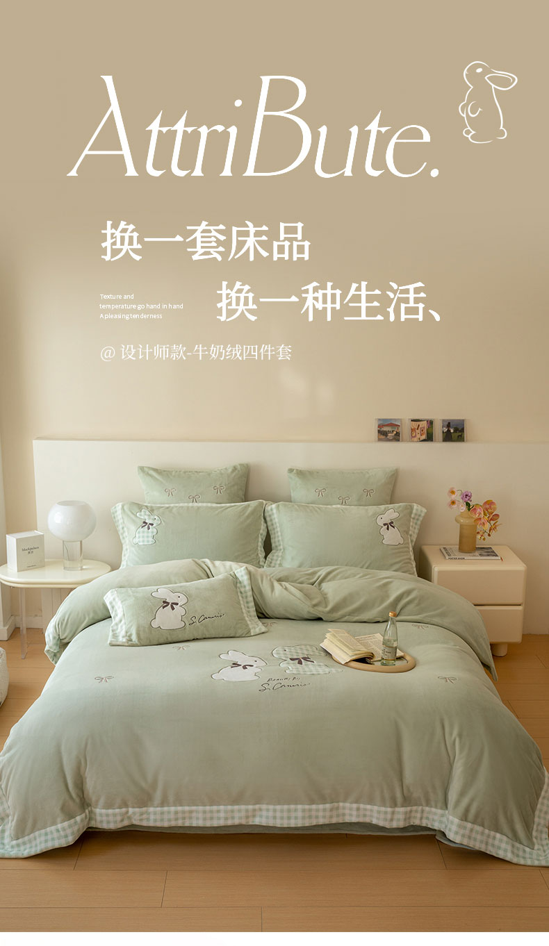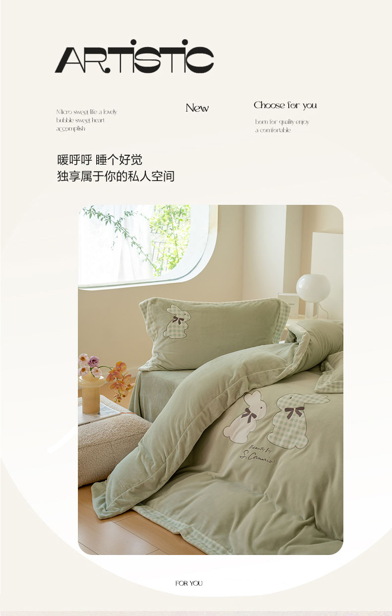(总)FORTWO家纺 2024新款230G牛奶绒拼角款四件套-小兔日记