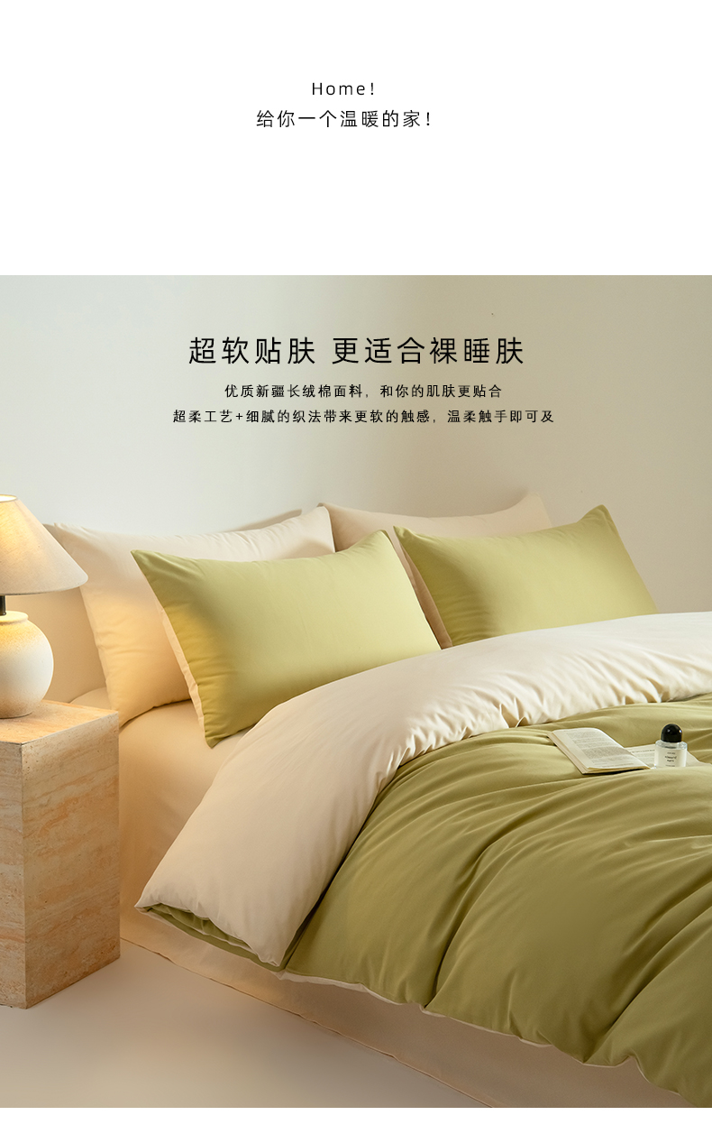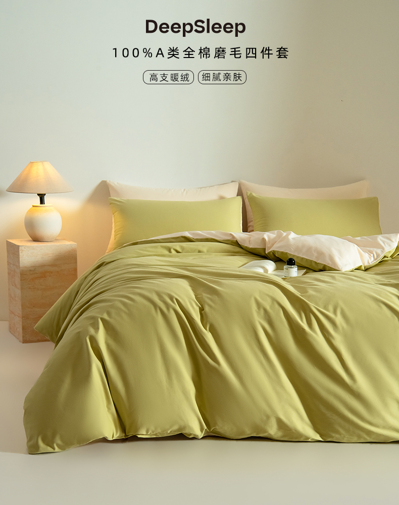 商品名称:Mr.pig猪先生水洗棉 2024新款A类50全棉磨毛单品-四件套 莫兰绿+透玉粉